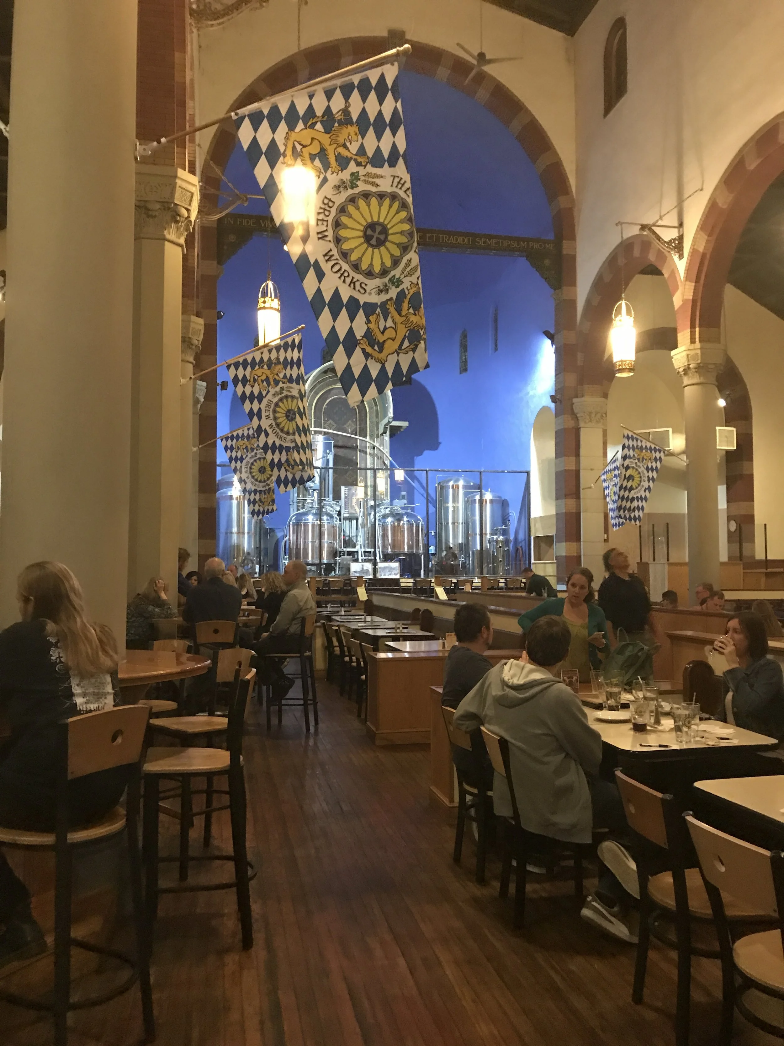 I got into Pittsburgh a little too late to hit most of the spots I wanted to, but I did get to see the Church Brew Works, an old church turned brewpub. It was absolutely gorgeous on the inside (the best part was that the confessional was now a bathroom. No matter what the room was used for expelling evil). Their beer was really good too, but the flight came with seven beers as opposed to the four I was expecting so I also ordered an appetizer to help space out the time and fill my belly to make sure I didn't accidentally get more tipsy than I'd like. I had had enough bad driving experiences to tempt fate on this one. For my app, I got the crab dip which was a mix of cheeses, beer sauce, and crab meat surrounded by beautiful slices of fluffy Italian bread for dipping. I'm sure the idea of cheese and crab isn't immediately appealing to everyone, but I absolutely loved it. As for the brews, the flight came with a pilsner, an oktoberfest, an IPA, a dunkel, a saaz, a hoppier oktoberfest, and a brown ale. The Dunkel was definitely my favorite, with the brown ale, and the hoppy oktoberfest coming in second and third. The Hoptoberfest surprised me, because I generally don't like hoppy beers, but I guess it was nicely balanced out by the greater maltiness of the base beer. Definitely worth the stop.