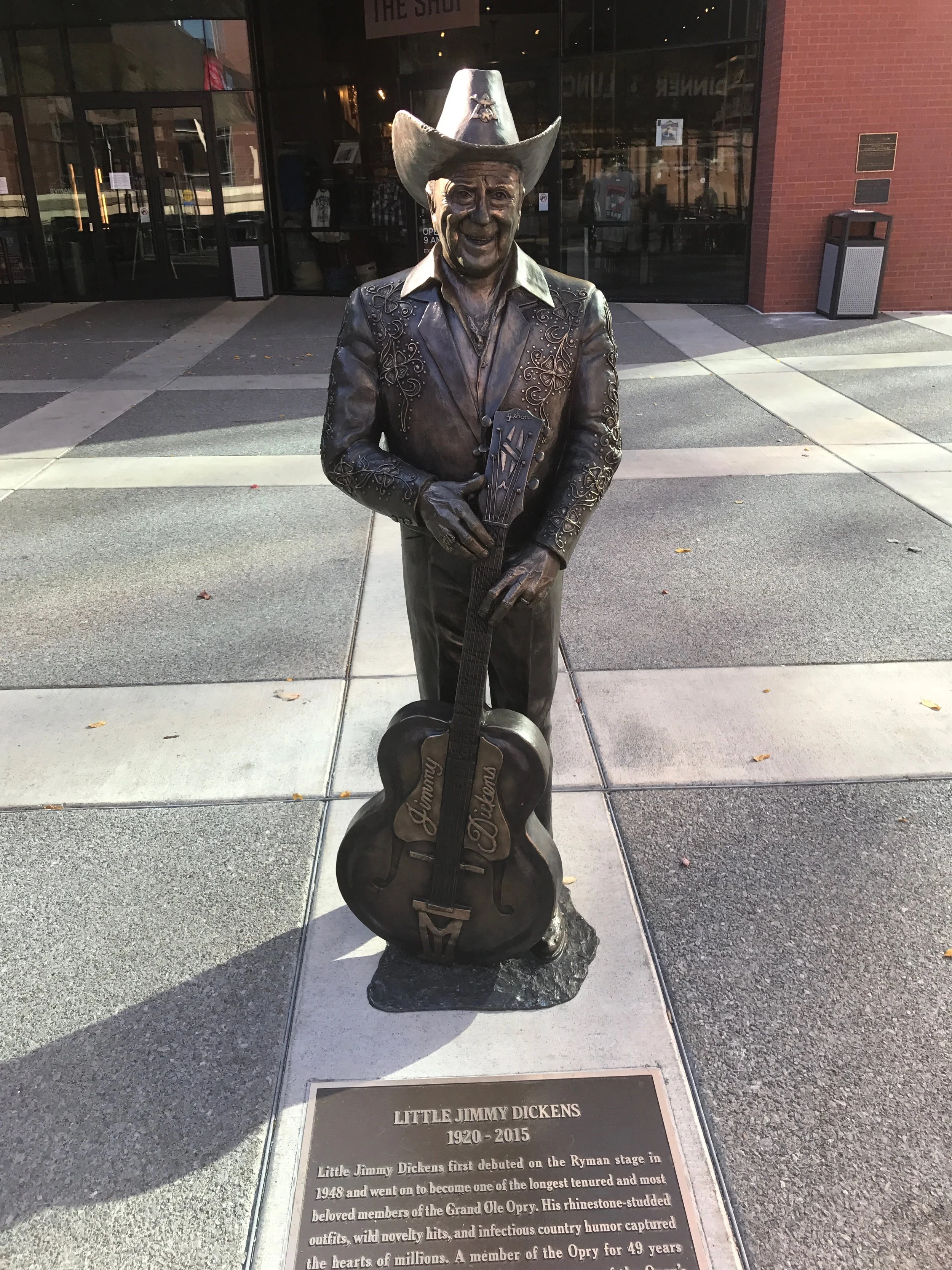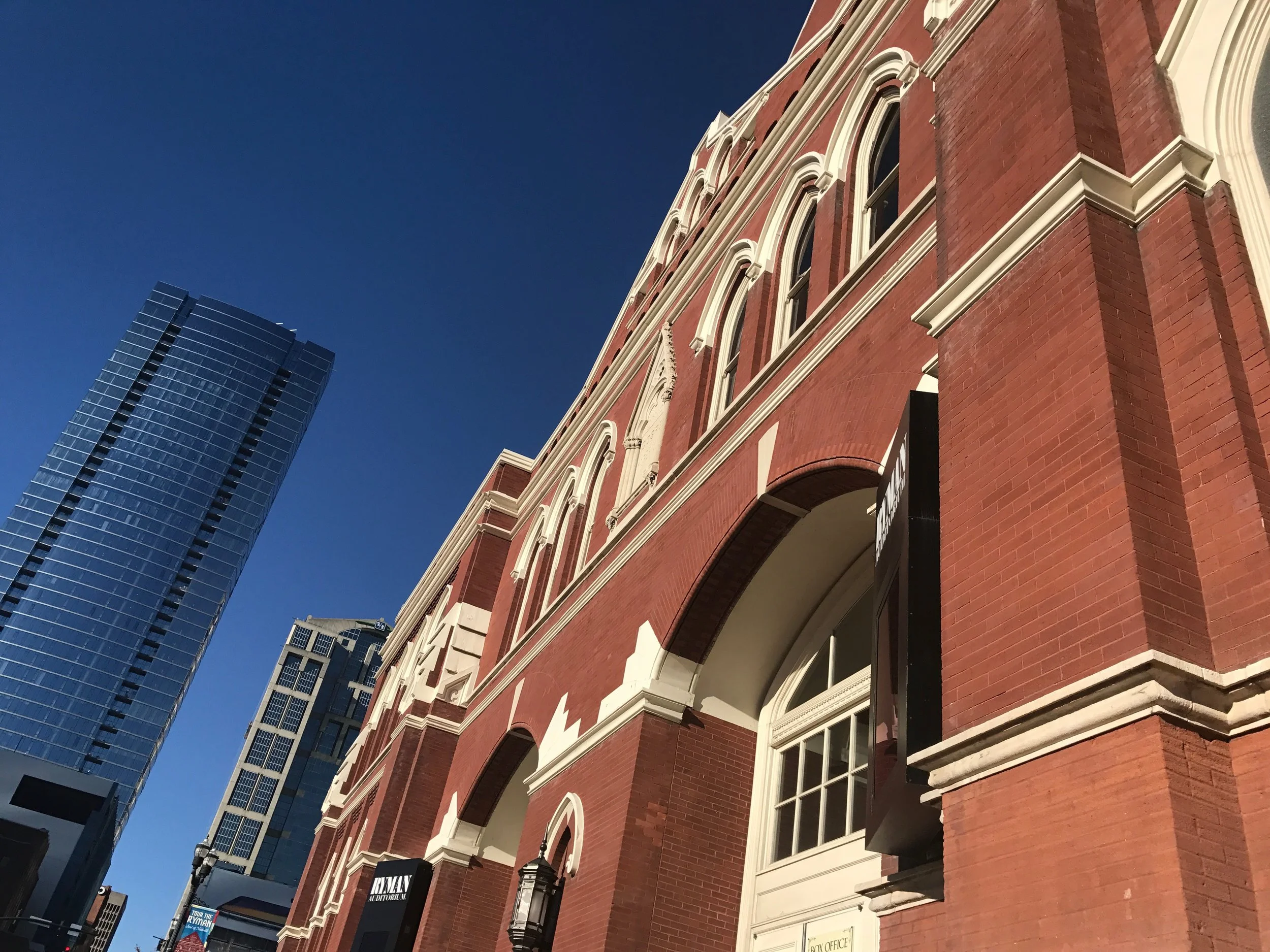 From there, we had the hotel shuttle drop us off right in Downtown Nashville. Our first stop was the Ryman Auditorium, the original home of the Grand Old Oprey. We wanted to keep moving after our big lunch so we didn't go in and take a tour, but just walking around the old outside, it's a beautiful old building with some impressive statues of local Nashville legends all around it.