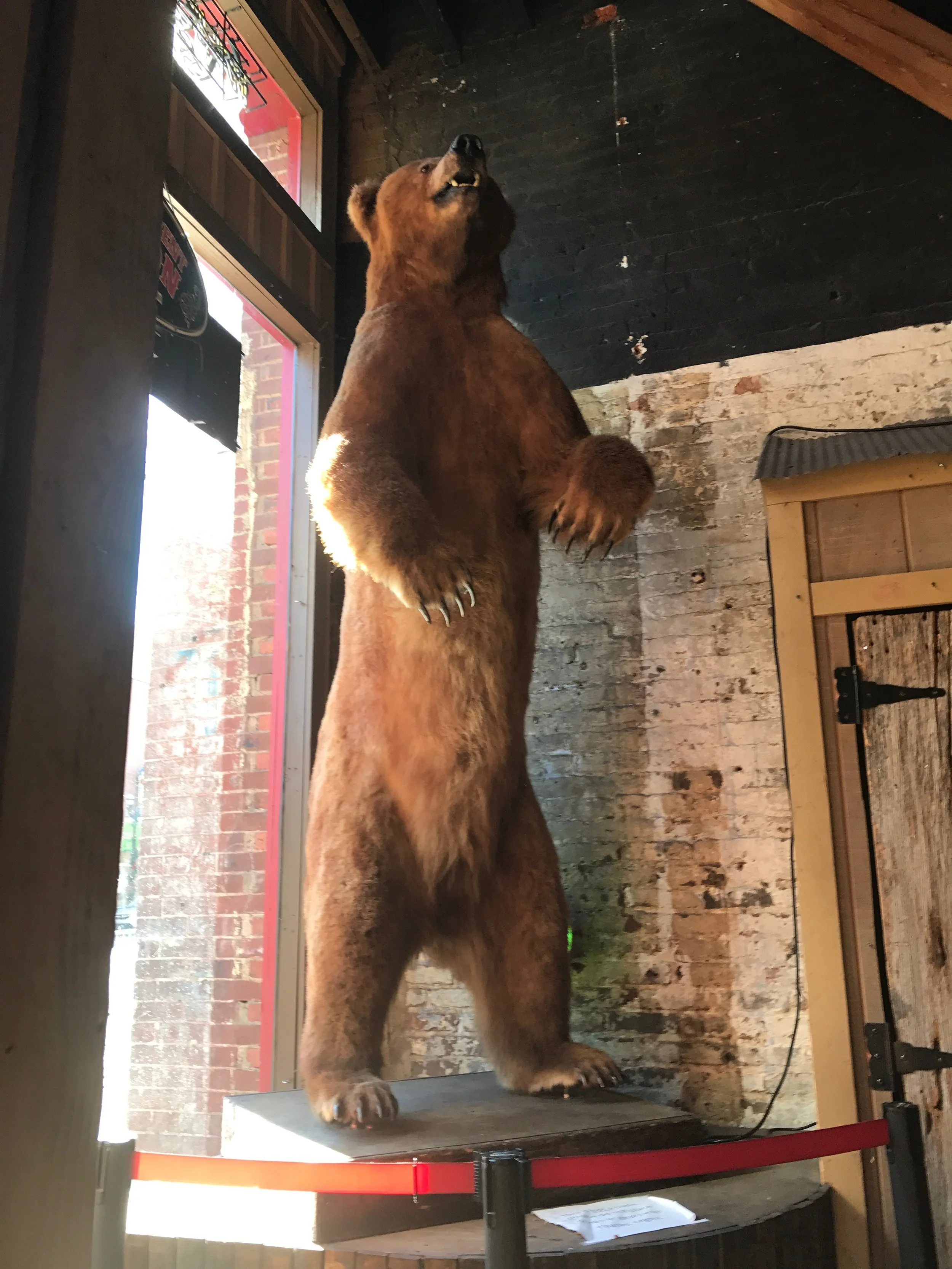 When we all awoke we went back downtown for dinner. The city really comes alive at night with all the neon lighting up the skyline. We went to a restaurant called the Stillery after reading good things online. It's not a small pub, so it was packed with people but it was worth the wait. The quality and portions are insane for relatively low priced it is. James and I decided because everything looked so dang good, we'd divide and conquer. He ordered a pretzel burger (bacon, pub cheese, and two patties on a pretzel bun) and I ordered a BBQ Chicken Pizza and we split both down the middle. Neither of us could finish both halves, but we loved every bite along the way. They call their sandwiches and burgers "two handed" and for good reason. I barely had any room for pizza after just half a burger, but it was perfectly cooked and the pretzel bun really was the icing on the cake. While I didn't finish it, the pizza was also superb with more of a sweet flavored barbecue sauce on it. It might have been the best BBQ chicken I'd ever had. To drink I got a Jackalope Red Rye Ale. I was mostly inspired by the logo of the fabled Jackalope, but the beer was quite good with just a little hint of whiskey flavor from the rye.