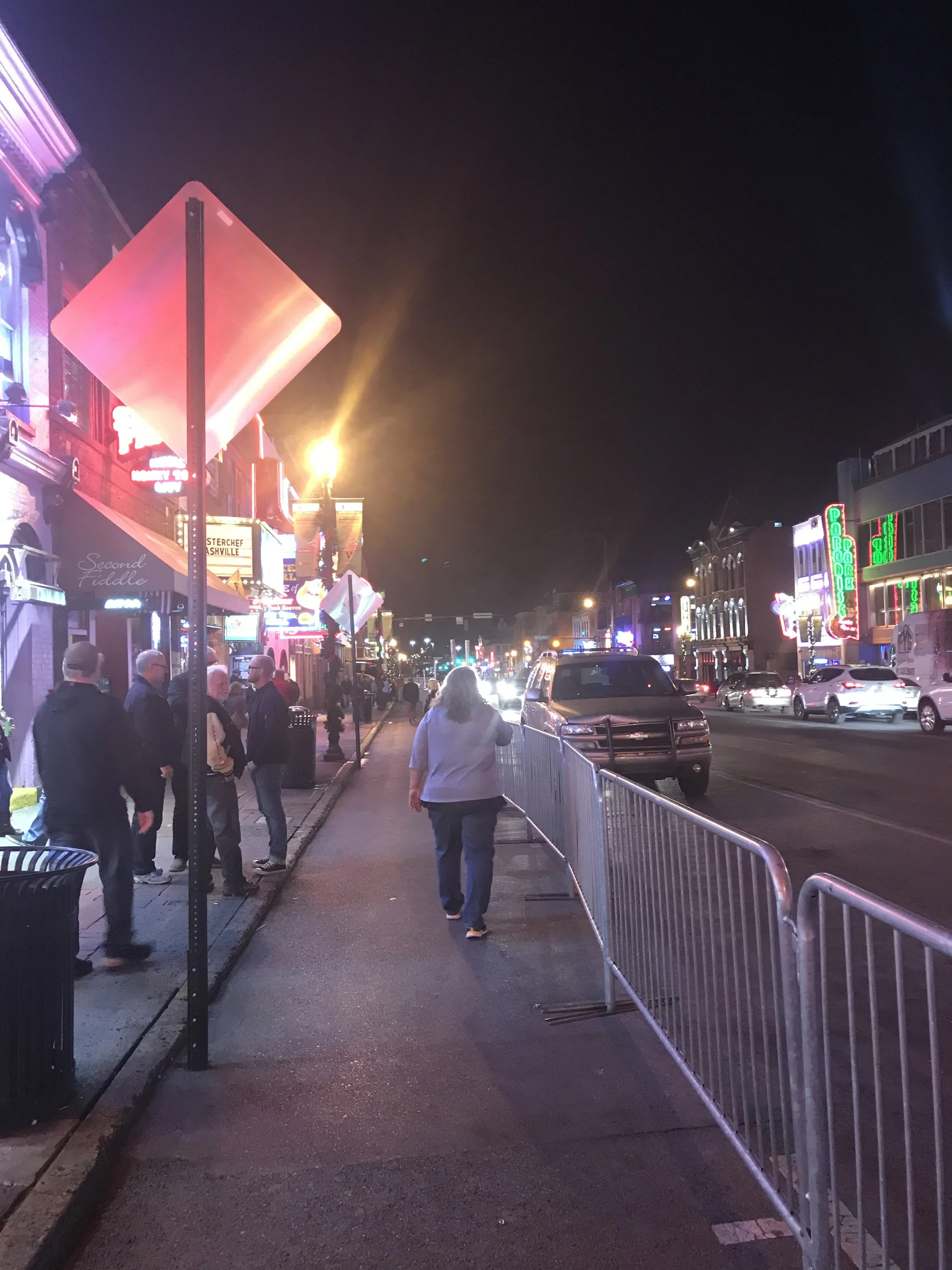 After dinner, I went to my first mic in Nashville. It was at a bar called the East Room, and was unique among mics I'd been to before because they had a live house band called the Grey Grays, consisting of Sean Parrot on guitar and Gary Fletcher on drums. They both also did sets at the mic, so they were pretty multi-talented dudes, and they had really fun bantering chemistry with the host Aaron Webber. The live music to transition between comics really kept the energy up in the crowd which was nice because there were over 20 comics but I think people were still engaged at a point where they'd normally tune out.