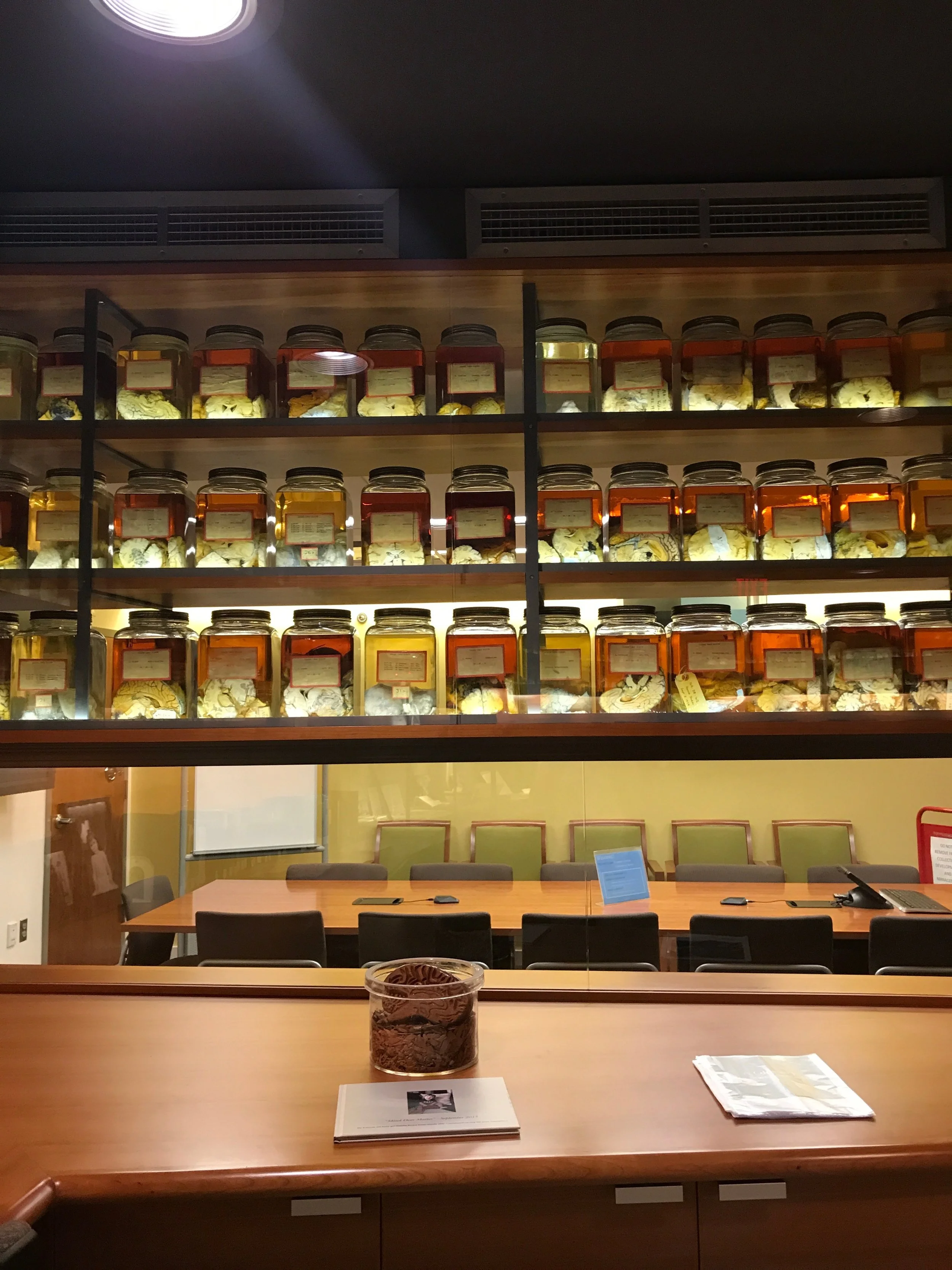 I started by visiting the Harvey Cushing/John Hay Whitney Medical Library at the medical school. Cushing was one of the pioneers of neurosurgery and he had a collection of over 400 brains many of which can now be found in this seemingly innocuous basement. Besides the brains there were lots of cool artifacts from medical history, and artwork related to medicine.