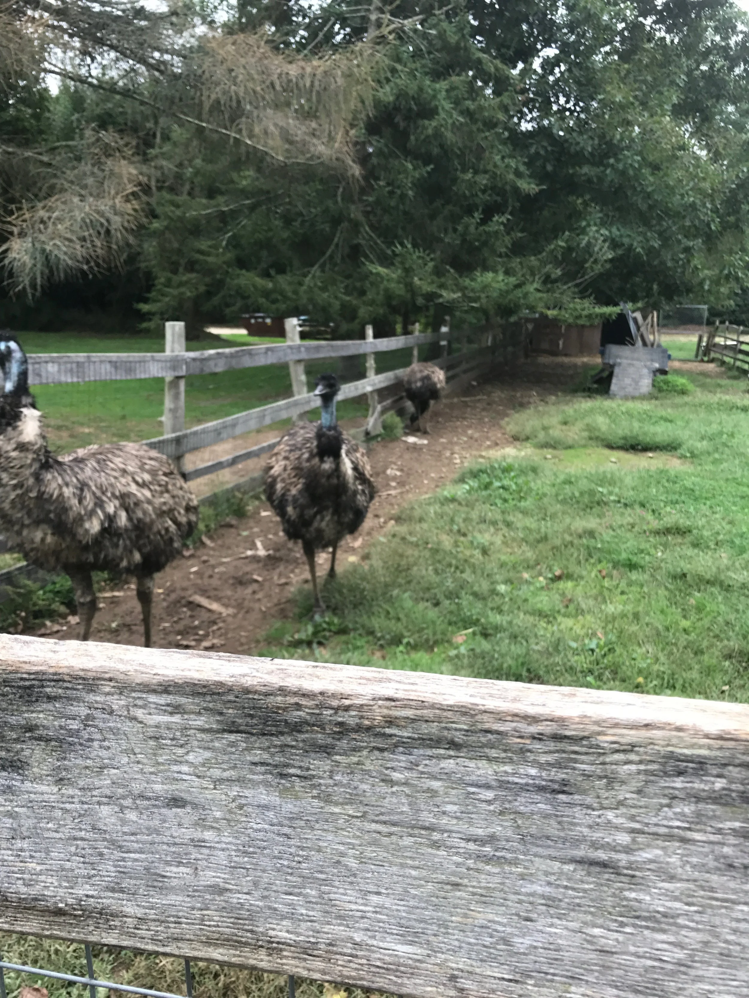 With more than enough coffee, I went to the Fantastic Umbrella Factory in Charlestown. I didn't actually read much about it was, but just liked the name so much I had to go. I was very glad I did though because it turned out to almost be a (slightly) less weird Rhode Island equivalent of Nervous Nellie's Jams and Jellies. It's not actually a factory, but a farm that's been around for over two hundred years with six small shops and a cafe. Not all the shops were open when I got there, but the ones I saw were really cool. Lots of local artists and artisans displaying their works and crafts. There were statues everywhere, and a lot of livestock running around. Including emus!