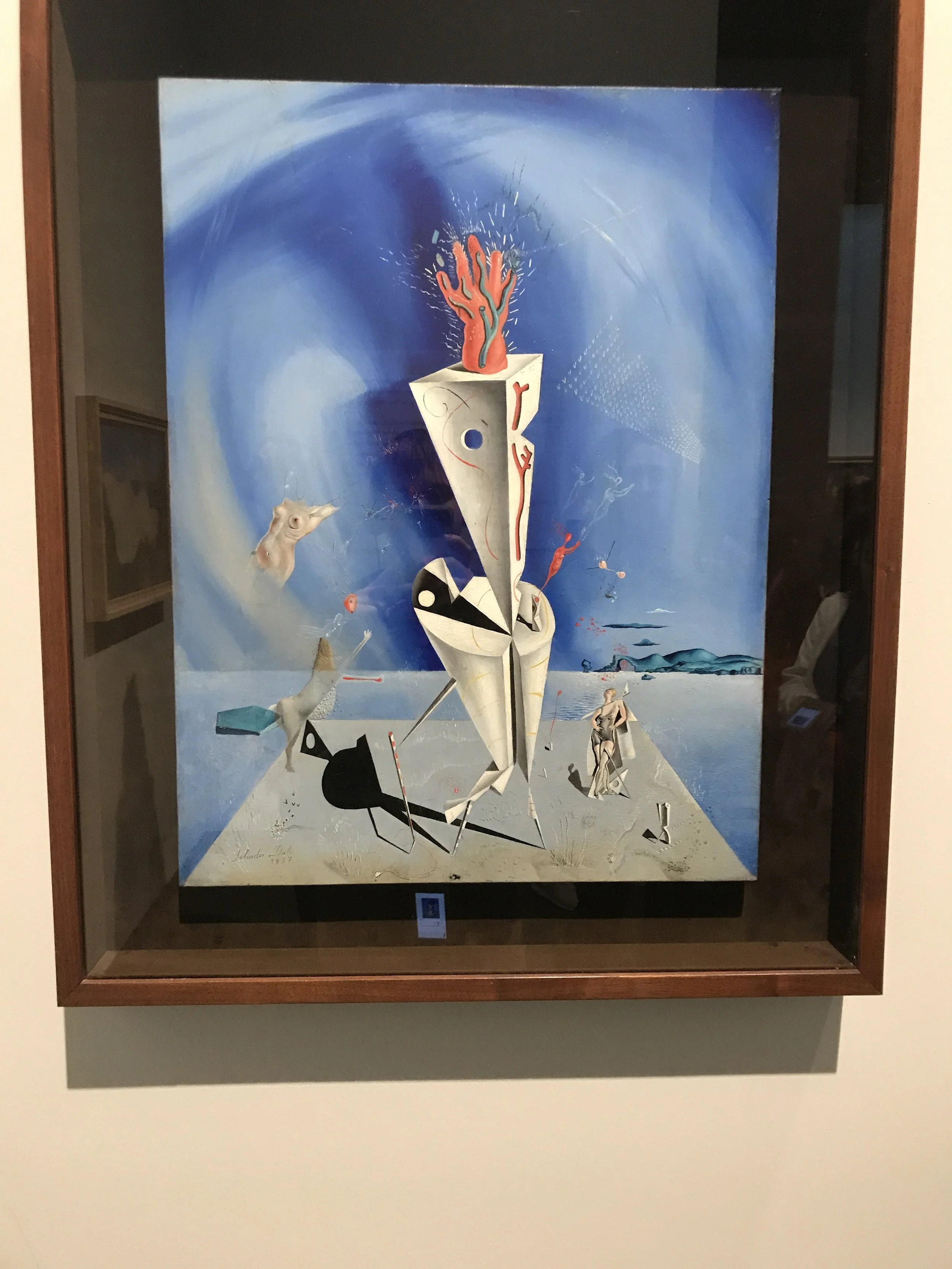 That all started to change once he stumbled into Surrealism and just sort of let his dreams take over. Once you literally turn a corner in the museum gallery, now you've got all the classic hallmarks of the Dali we know and love. Massive empty landscapes, check. Double imagery and plays with perspective, check and check. Blending of photorealism and dreamlike shapeless figures, check. There's even a few melting clocks here and there! I think my favorite thing about his paintings is how much different they look at a distance and up close. There's always so much weird stuff going on in the backgrounds, I love it.