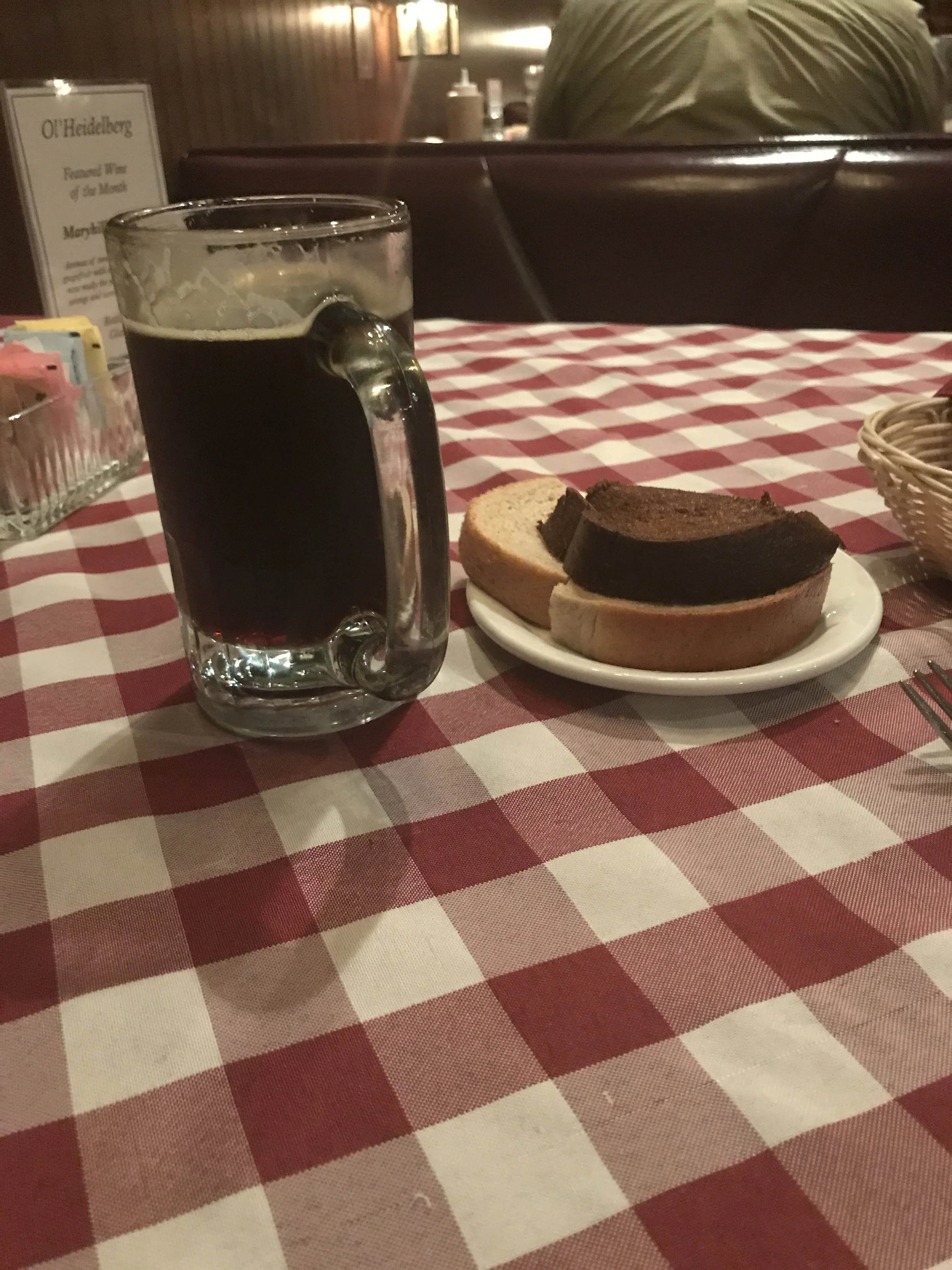 For dinner, I went to the Ol Heidelberg Cafe a family owned German restaurant hidden away in a Huntsville strip mall. The place was a real local gem, and there was about a 40 minute wait. But the waitresses all wore lederhosen and their was a painting of a reindeer in a hat in the bathroom so I felt like it would be worth the wait.
