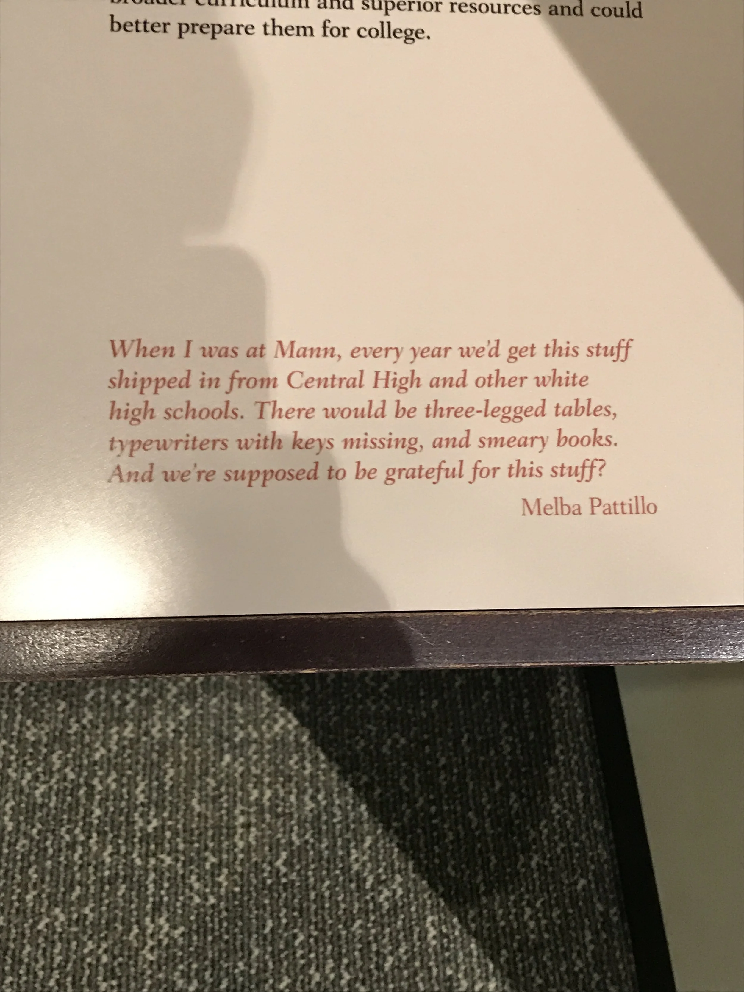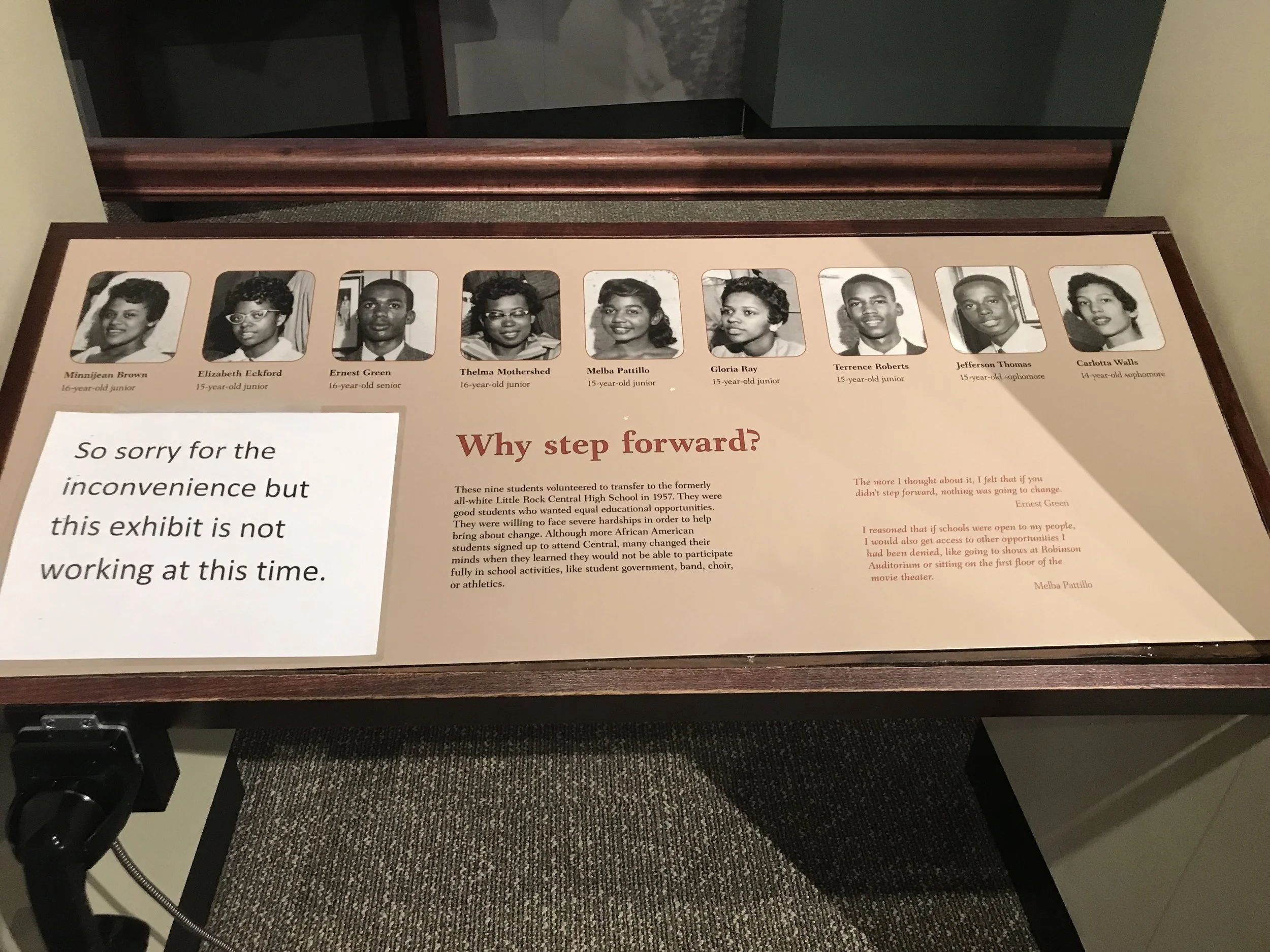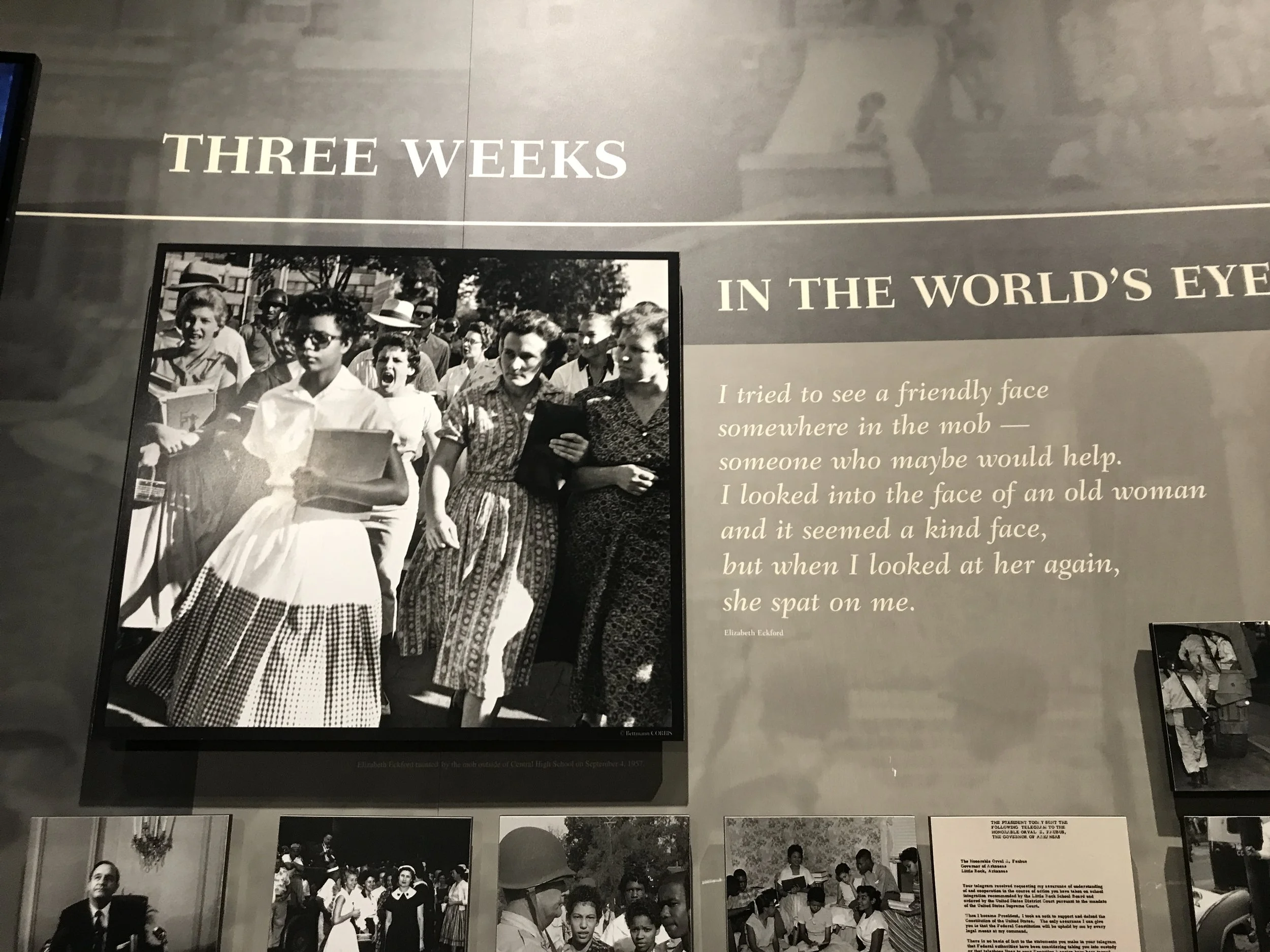 On a lighter note, I was really happy the center had some recent recordings of interviews with the Little Rock Nine as adults. They all (or almost all, Jefferson Thomas has since passed away) still hang out which is really sweet. It makes sense though, they were really all each other had during the whole ordeal. They also all had pretty successful lives, and somehow didn't hate the white people who tormented them so badly. One of the nine put it really beautifully when she said: "I don't have any hate in me, because I wasn't taught hate at home and I grew up around different kinds of people". I love that so much.