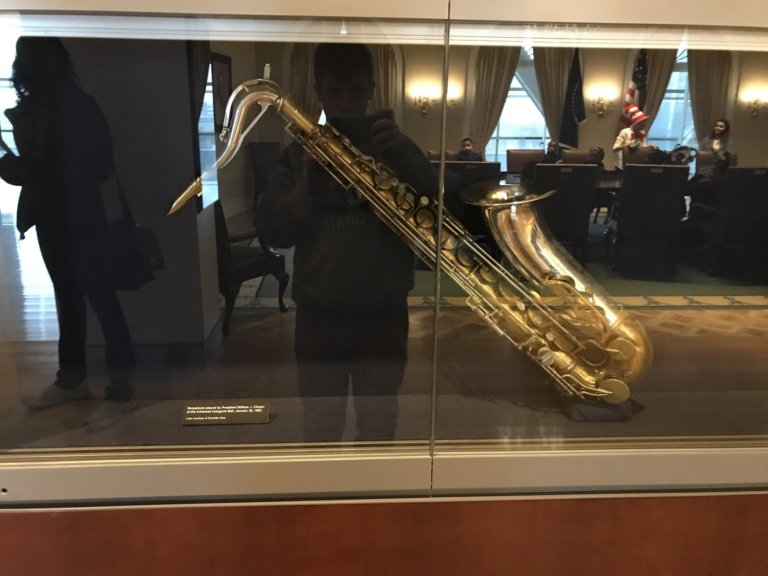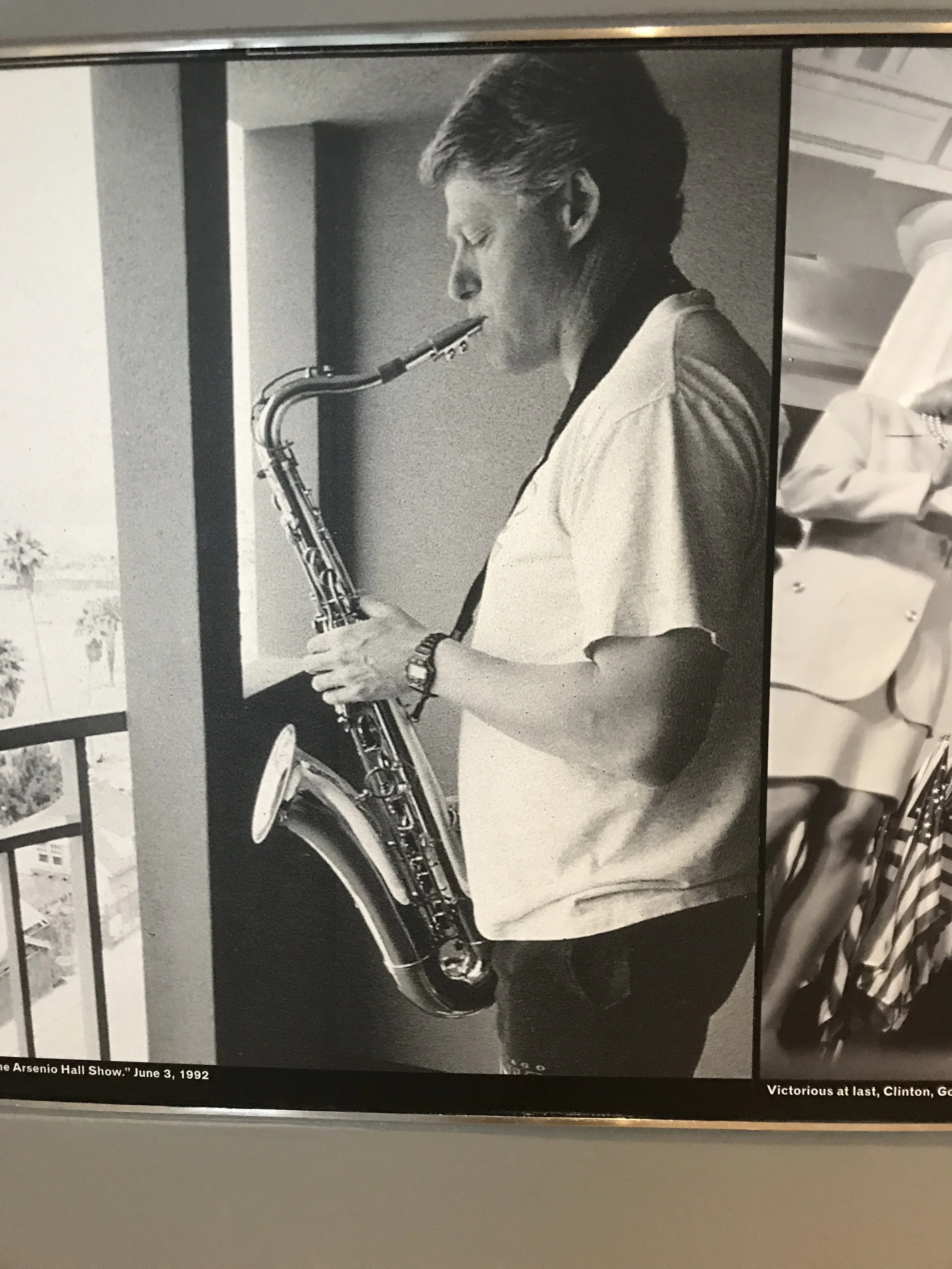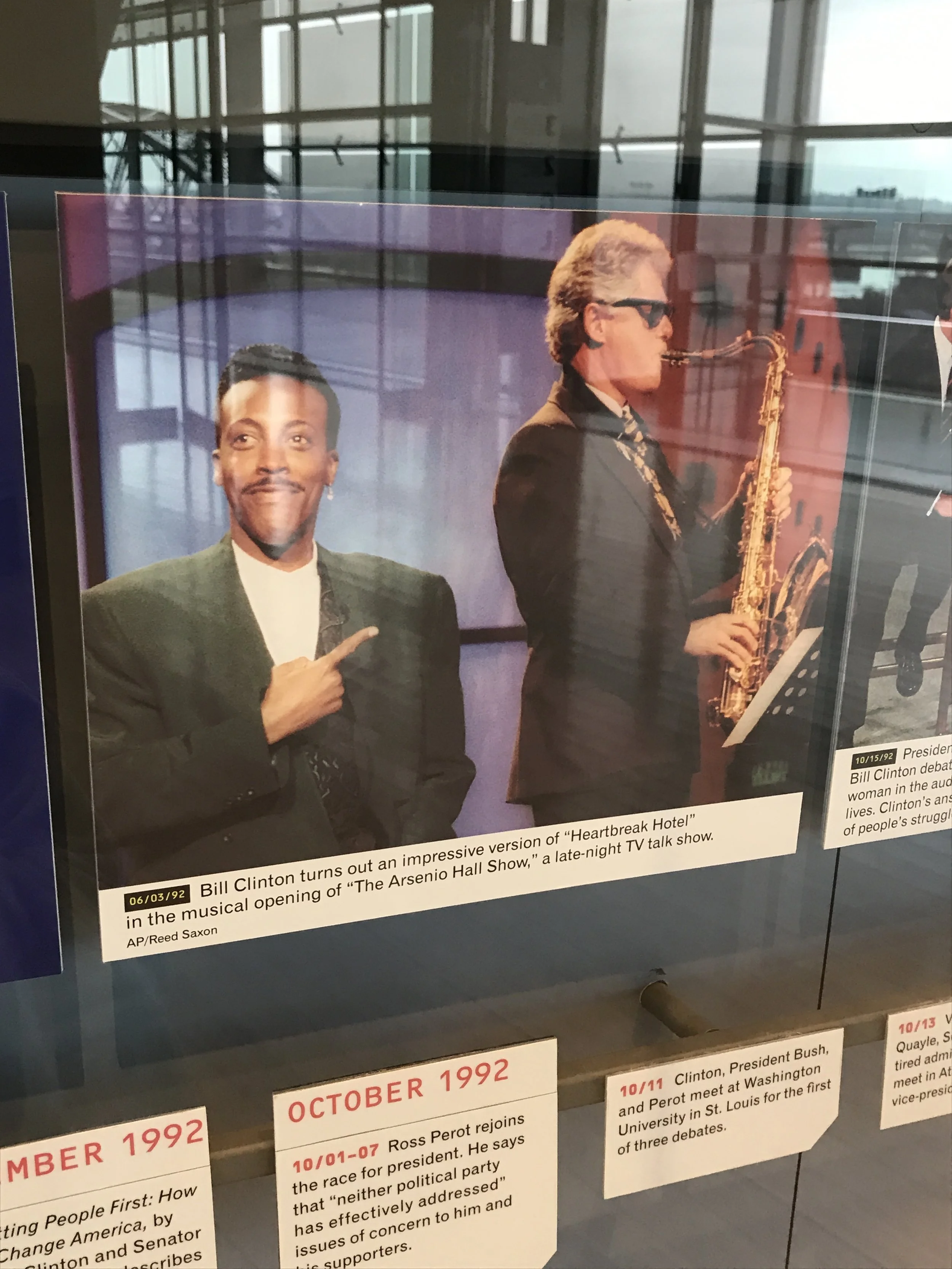 The main exhibit was a timeline of Bill's eight years in Office complete with artifacts, photos, and documents related to different moments, including Bill's own Saxophone.