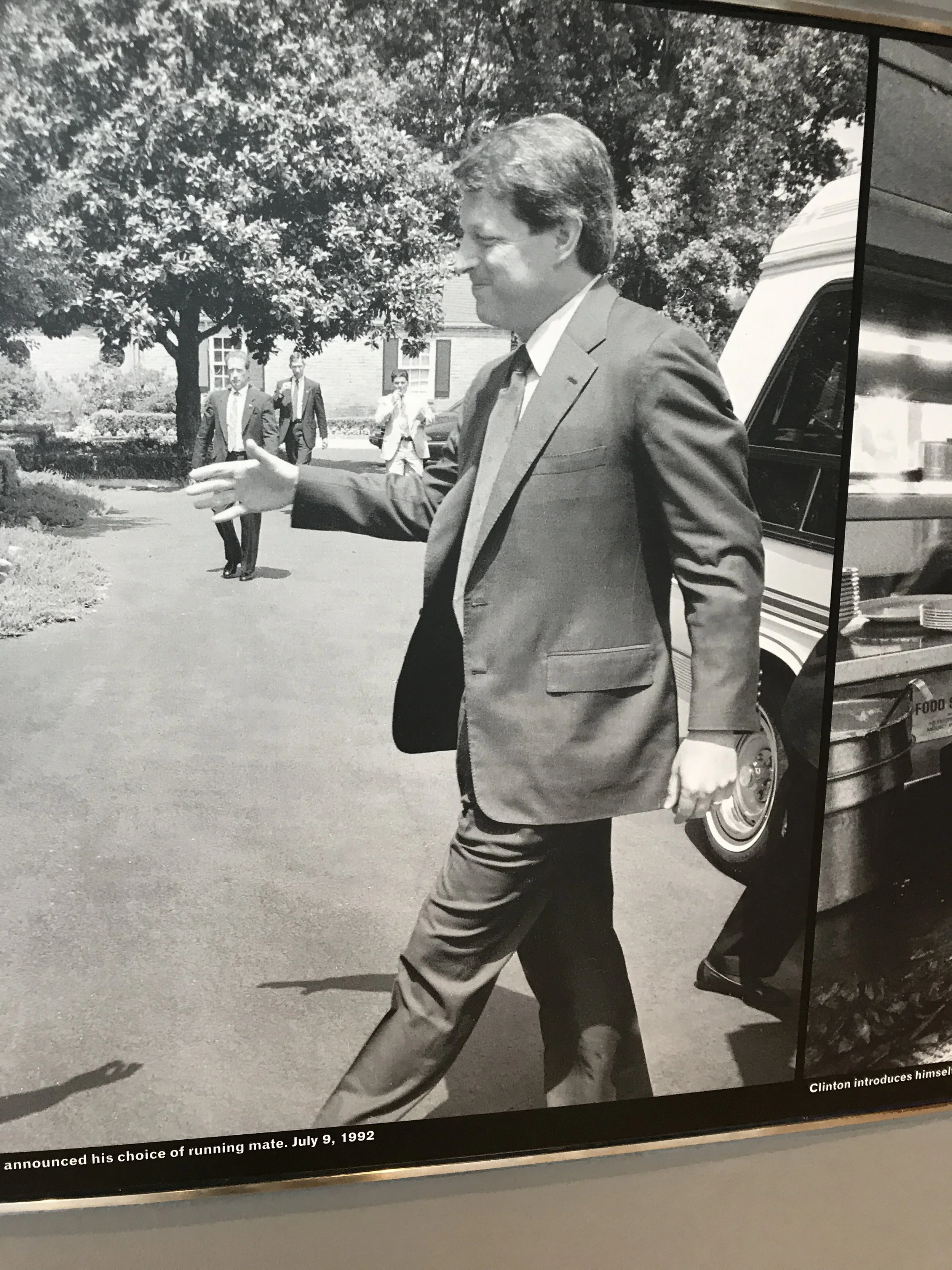 The next exhibit was a series if photographs from the campaign trail for both Clinton campaigns. I was technically alive during Clinton's presidency, but I didn't realize what a big deal his first campaign was. He was the first viable Democratic candidate in nearly 12 years, and he ran a youthful, revolutionary campaign designed around embracing modern technologies and appealing to previously neglected communities of voters. His community outreach during the campaign was really well done, and he did a good job meeting voters directly and more than a few people voted for a Democrat for the first time in their lives for him. I really got a kick out of the photos because there was a good mix of candids in with the press photos. The 90s were such a fascinating time for fashions. My favorite recurring themes were whenever Bill was just playing a saxophone or Al Gore was looking like big goofy nerd. I really like Al Gore, but whenever he's hanging out with the Clintons, you can't help but think they totally would have bullied him in high school.