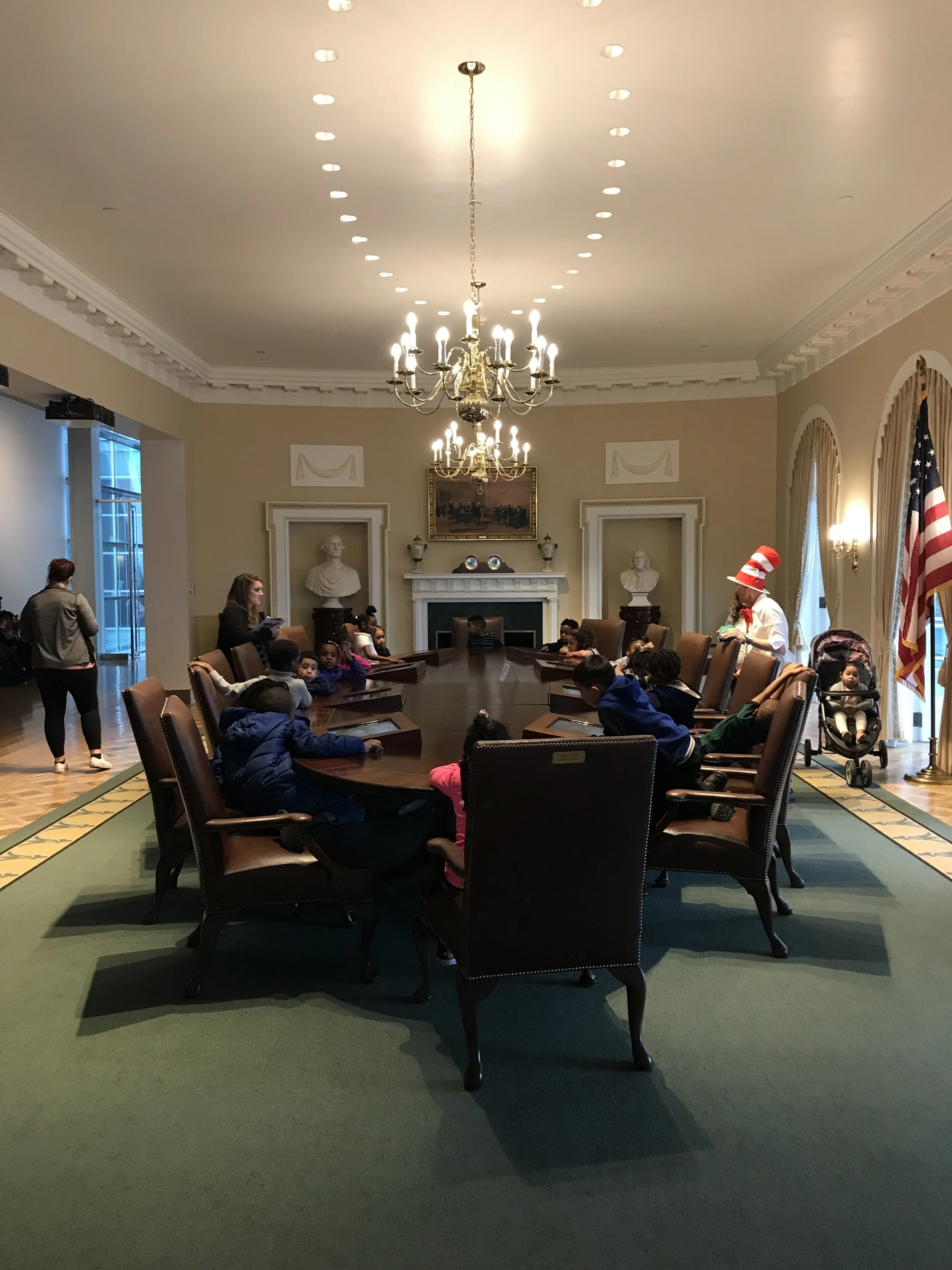 Next up was a recreation of the Cabinet room in the White House. While I was there, the seats were filled by elementary schoolers and their tour guide was wearing a big Dr. Seuss. It was almost a too-on-the-nose metaphor for our current cabinet.