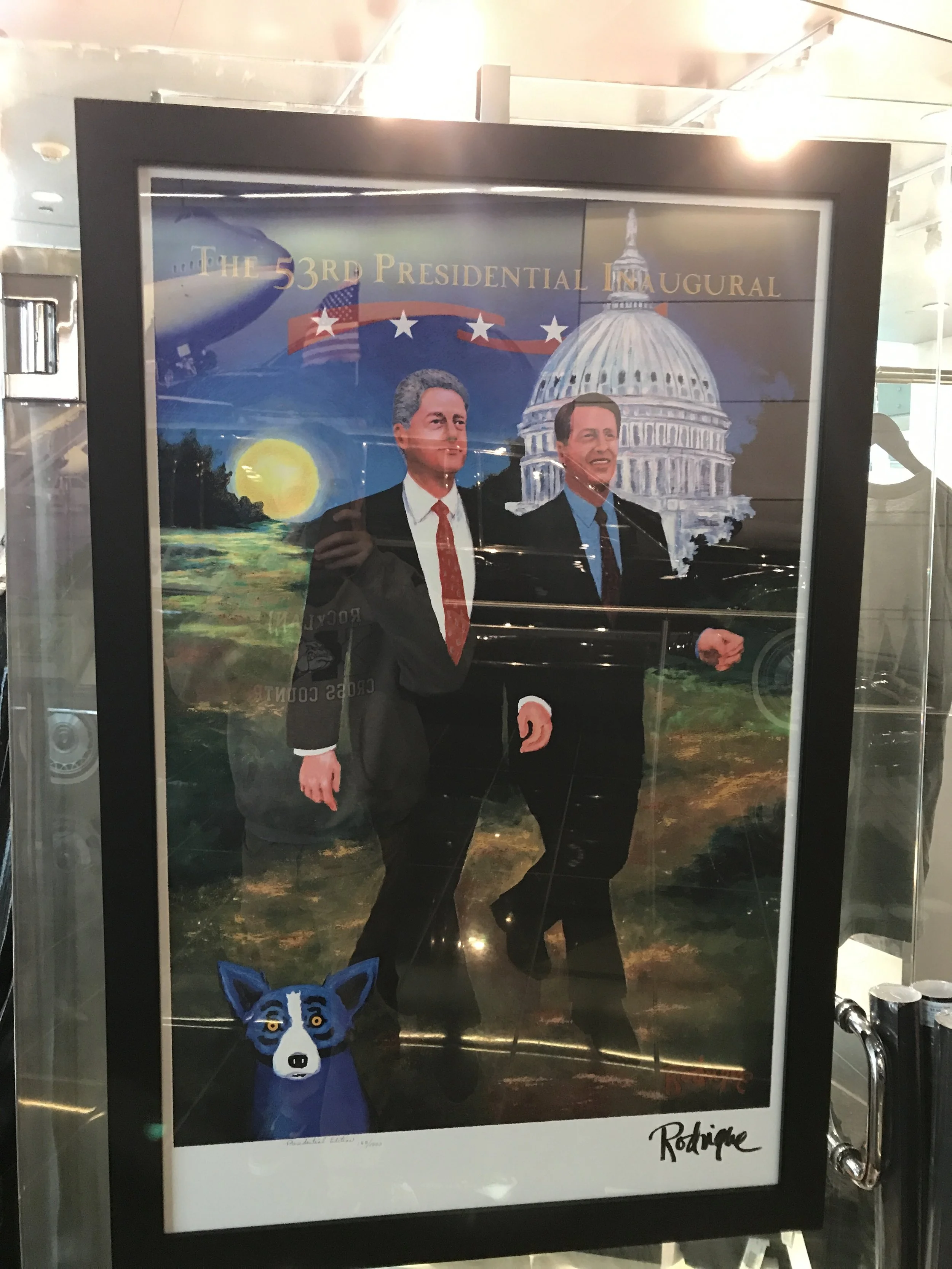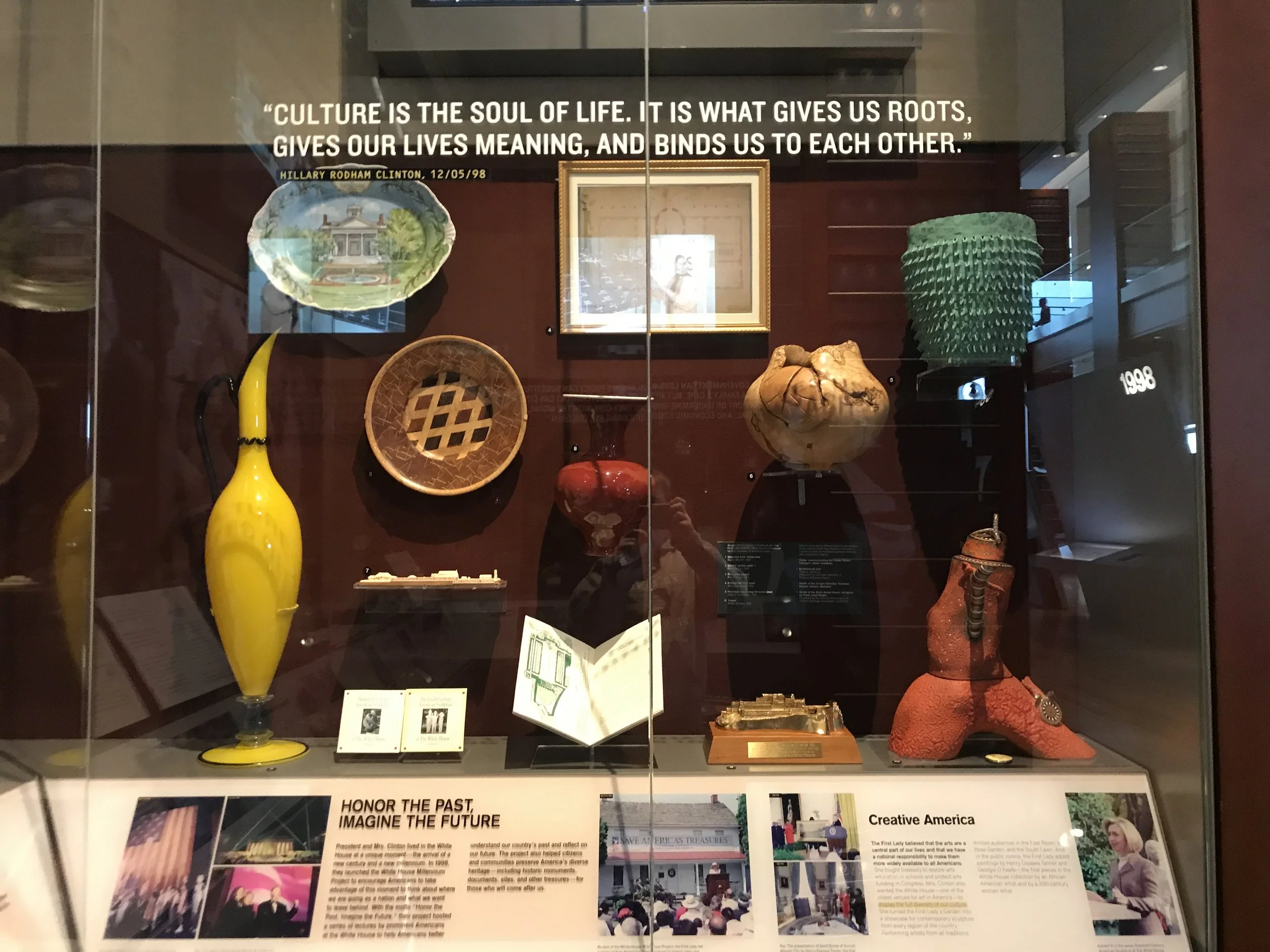 My favorite White House related artifacts though were the different Presidential gifts the Clintons had received in Office. They all have to be on display because technically gifts to President have to technically belong to all the public otherwise they become a bribe. The gifts represented some pretty amazing pieces of art from around the world including paintings, ceremonial swords, sculptures, a Dale Chihuly chandelier, and a bike with "Mr. President" written on it. I hope Bill rode that everywhere.