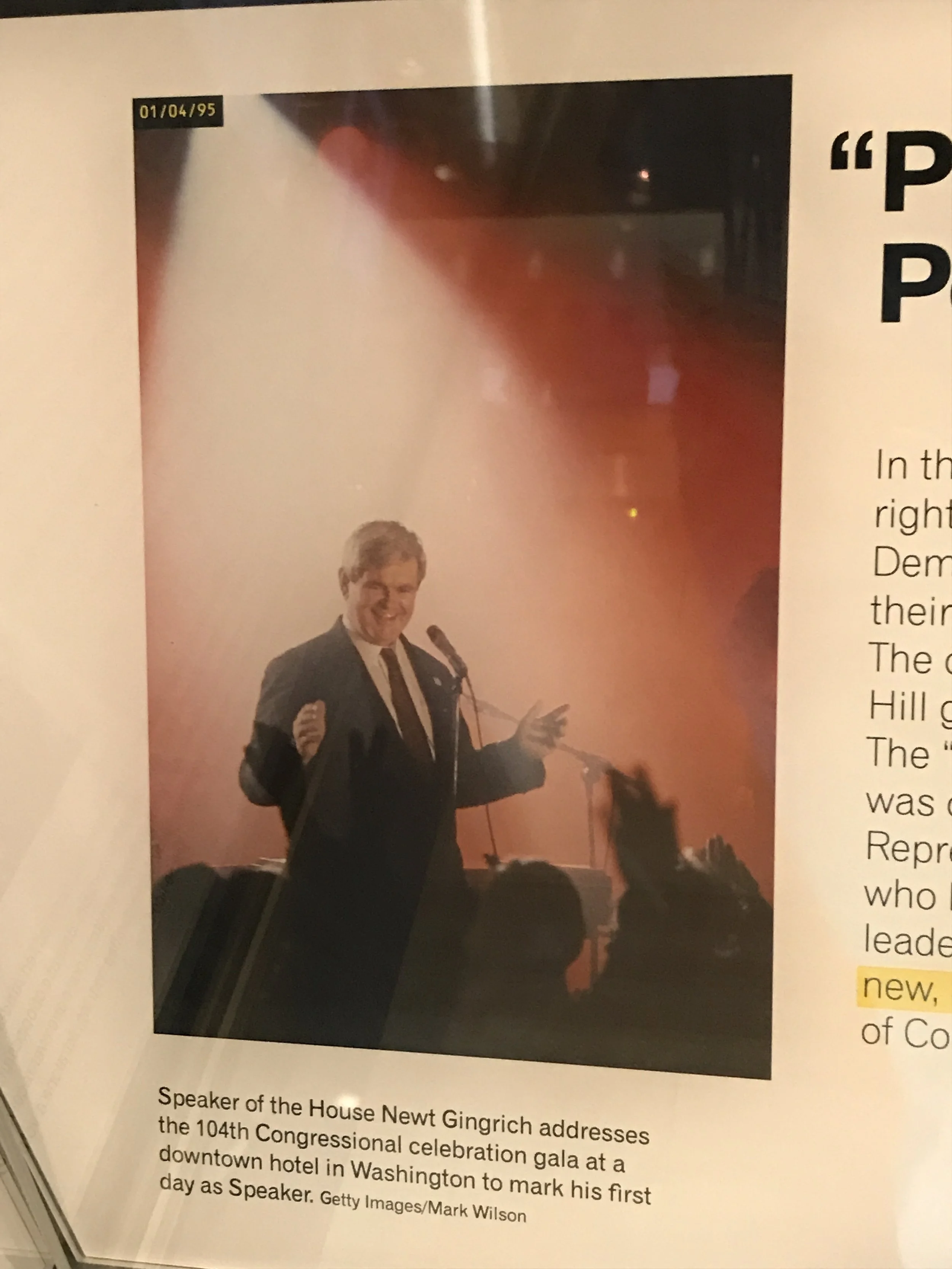 I actually got surprisingly emotional reliving the 90s and seeing how much the world has changed in such a short amount of time. The museum did very little to change my impression of Bill as a person (pretty terrible), but it did make more impressed with him as a President. For a decade that started with a whole lot of strife, the 90s ended on such optimistic notes (minus the whole robot apocalypse scare) with relatively good global relations, the beginning of the internet age, and no deficit! We had one of the biggest periods of expanded social programs and education services since LBJ tried to kickstart his Great Society. Bill doesn't deserve all the credit for all of these, but he played his part well (until he didn't), he surrounded himself with smart people and actually listened to them, and he got all those things done with a huge amount of opposition from House Republicans, especially Speaker of the House and holder of 84 ethics violations, Newt Gingritch. I liked that whenever they chose to show Newty boy they picked photos that made him look nearly demonic. To be fair, he once said, regarding why he was divorcing his wife, "She's not young enough or pretty enough to be the wife of the President. And besides, she has cancer," so he might be kind of evil.