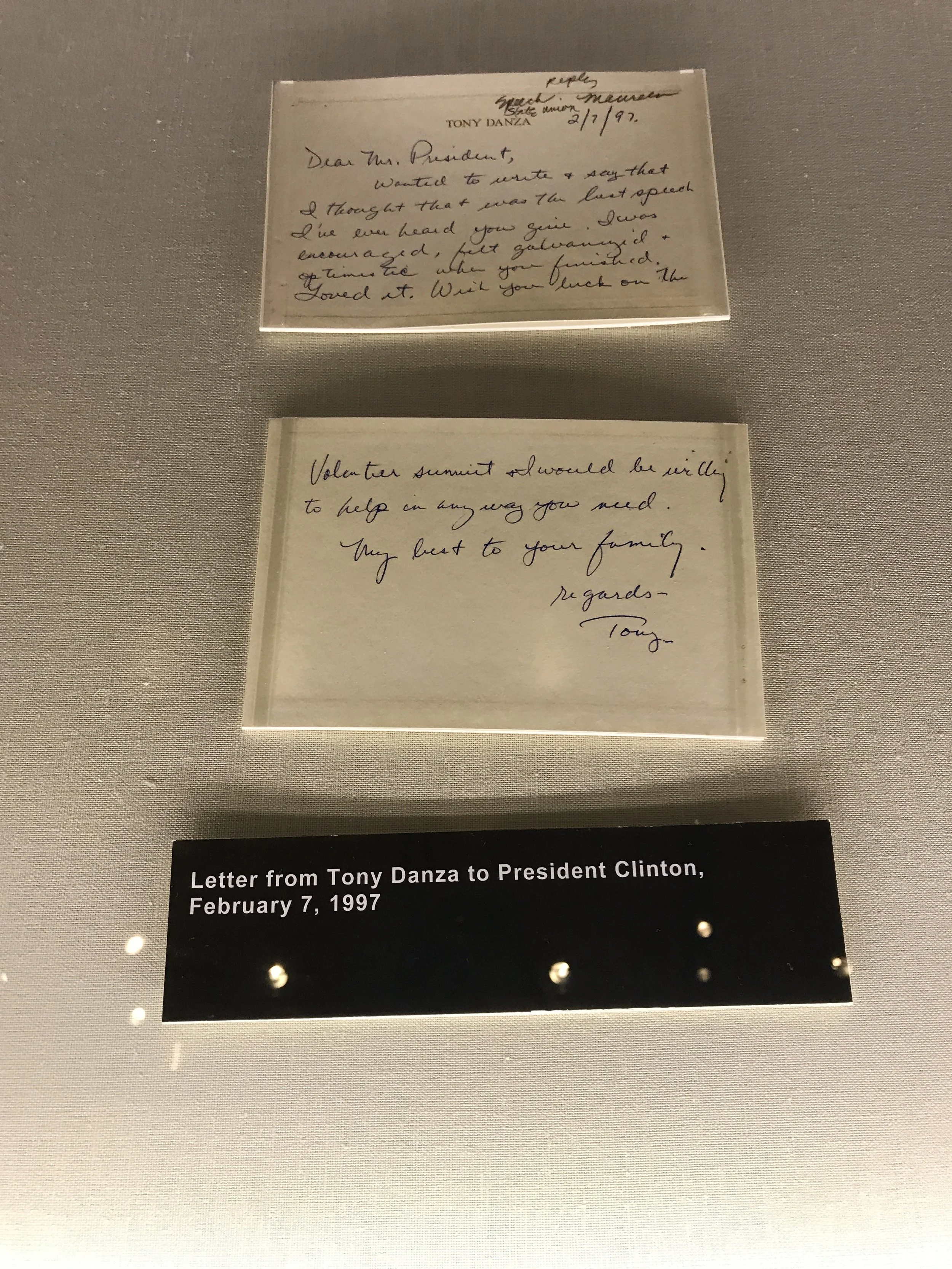 Some of the more items in the exhibit were letters that different celebrities had sent Bill, including Paul Newman, Whoopi Goldberg, Elton John, and even political mastermind Tony Danza.