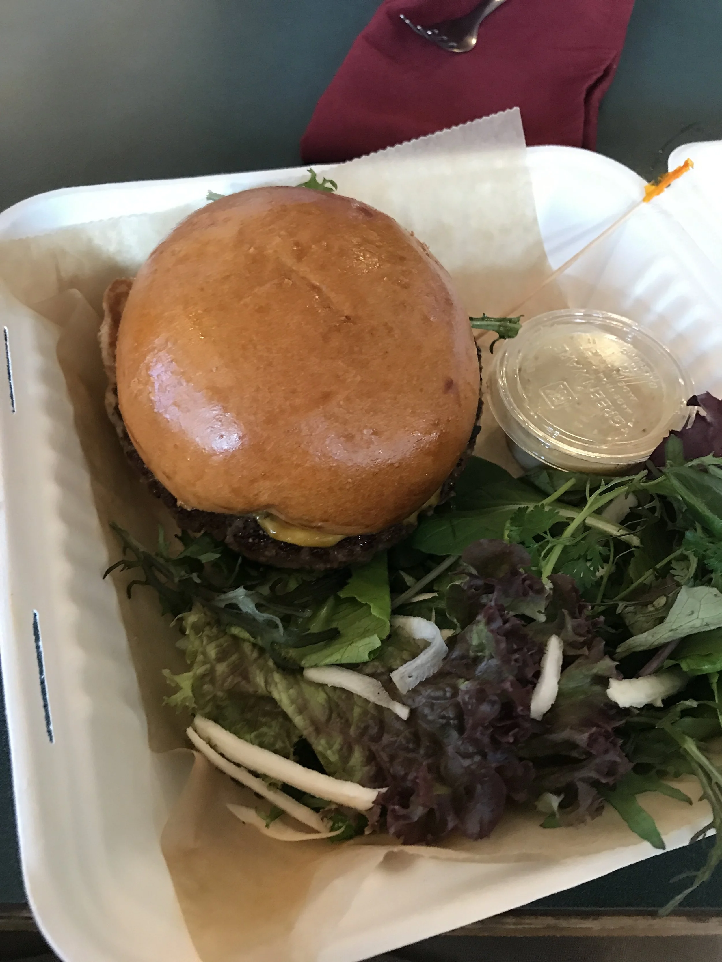 My burger was incredible. I got cheeseburger with lettuce, tomato, yellow cheddar, and garlic mayo because I like garlic so much that it can even make mayo okay. The 1/3lb patty was made from all locally raised beef, and it was so juicy and tasty, and cooked to perfection. The bread was also especially good because it's from a local bakery. It was a pretty astounding lunch, and I got a pretty great coffee too as an added bonus.
