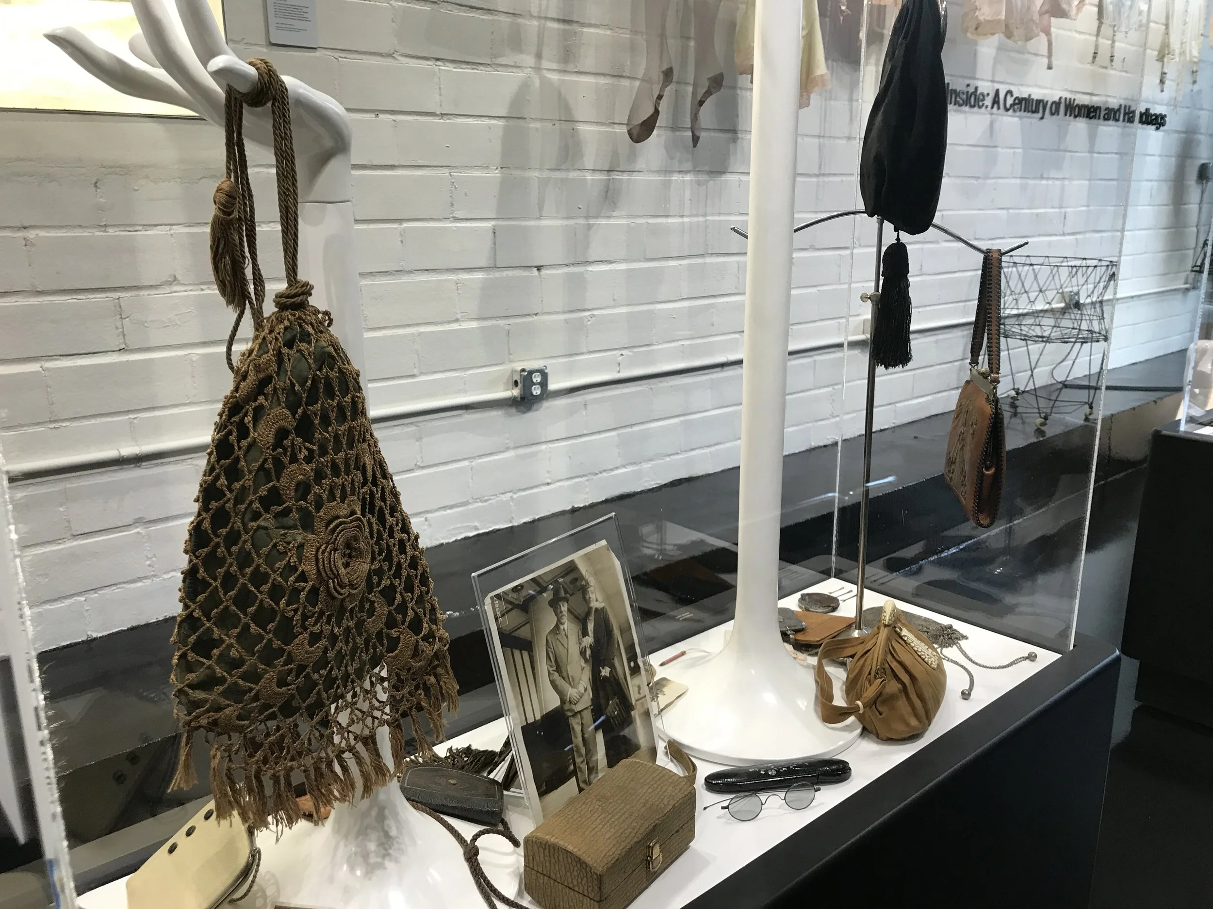 The displays were arranged by decades and the purses in each display were accompanied by periods objects that might have been carried by women from that time period (who were able to afford purses). Some highlights that struck me in general trends over the 20th century were as follows: