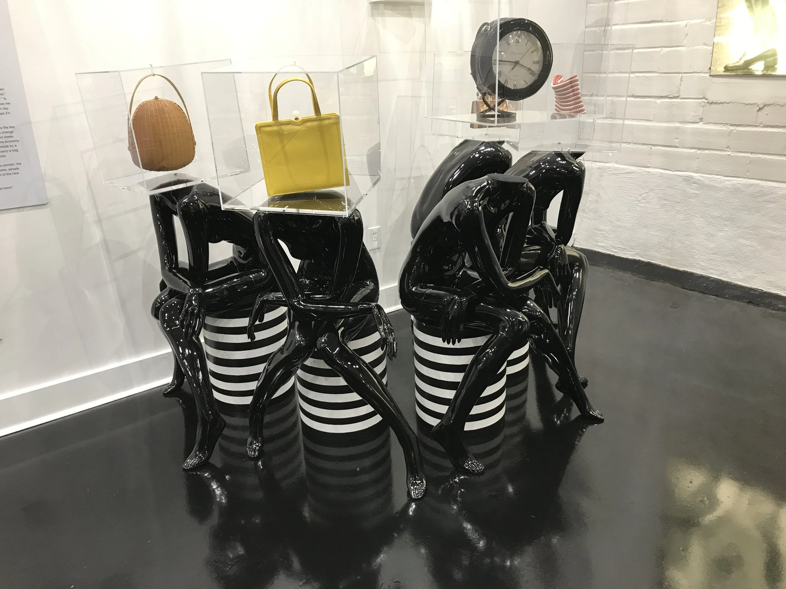 My purse-onal favorites (dear god, I'm sorry) were this horrifying purse made out toad's head, a more whimsical wicker purse shaped like a monkey, and a really need pop art display of mannequins with purses where the heads should be.