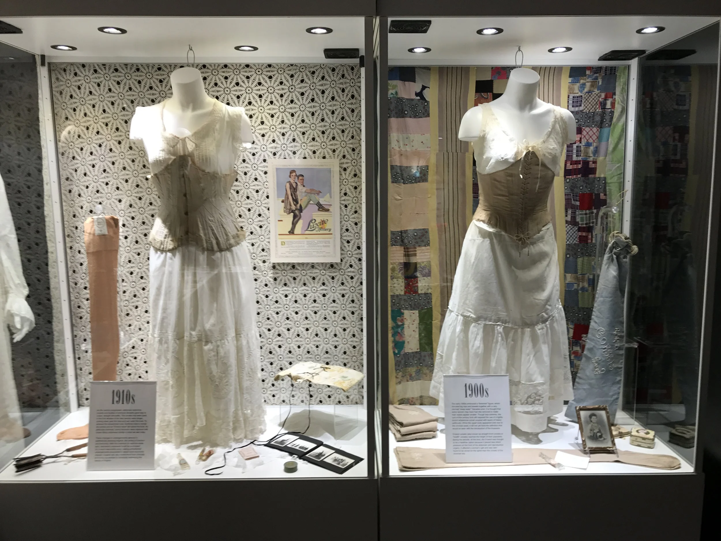 The special temporary exhibit was called Unmentionables and focused on trends in underwear design and style over the 20th century, with a focus on women's underwear but a quick nod to the fellas. I think the thing that I was most surprised to learn was that bras were initially designed to restrict breasts rather than support them, back when flat chests were considered the fashionable ideal. It was sort of depressing how much breast aesthetics factored into underwear design to a much greater degree than women's comfort and mobility. It's almost like the underwear was designed almost entirely by men and then also marketed towards men, because women were for most of the century not expected to buy their own clothes. Even contemporary bra ads intentionally court the male gaze in order to increase their odds of being bought as a gift for a woman as well as just bought by a woman. It's clever marketing psychology, but kind of shitty, especially in the decades when underwear was elaborate, cumbersome, and painful. As for trends in Men's underwear it was actually pretty interesting to learn that boxers existed as early as the 1920s but didn't start to become popular until WWII. The biggest men's underwear revolution came though in the 30s when the Y-front was invented . I can't believe people, male and female, lived so unnecessarily bundled up for so long.