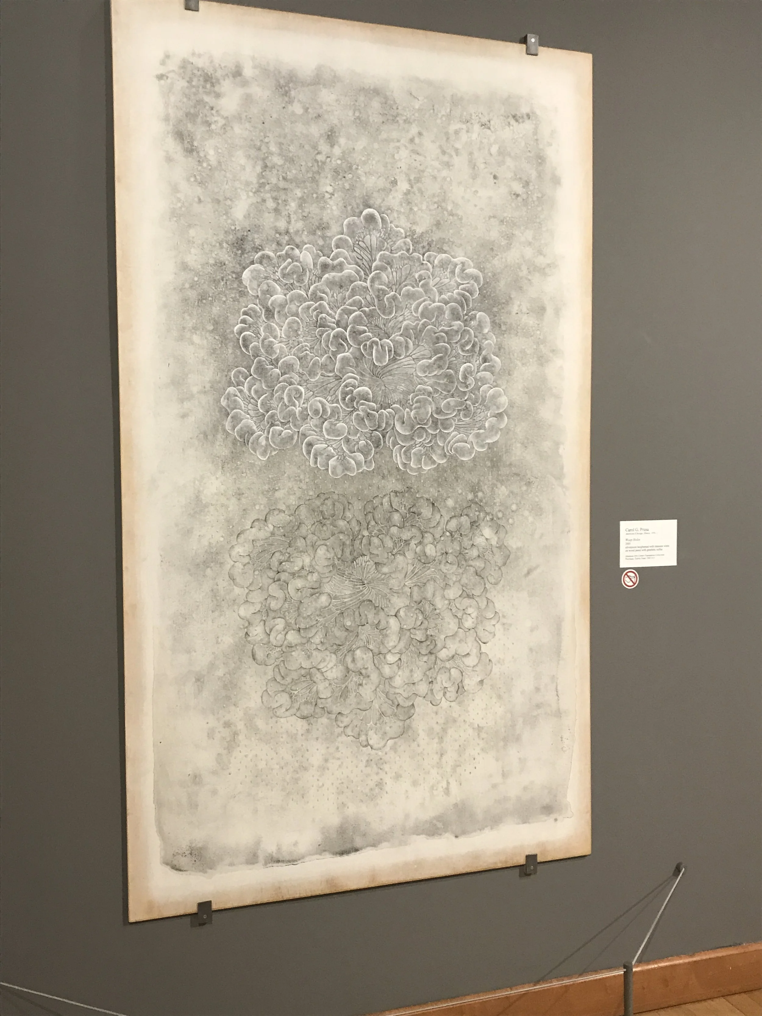 The first special exhibit displayed the works of an artist named Susan Schwalb, who made a name for herself by taking the ancient Renaissance artform of metalpoint and bringing it into the modern age of abstract expressionism. I had never heard of metalpoint, but it's a kind of art done when a fine metal stylus (usually silver) is used to draw onto specially coated abrasive papers that tarnish the metal and leave metallic markings. Because I'm not the hugest fan of abstract expressionism, I was more impressed by the methodology and experimentation than the finished products but some of them certainly looked really cool.