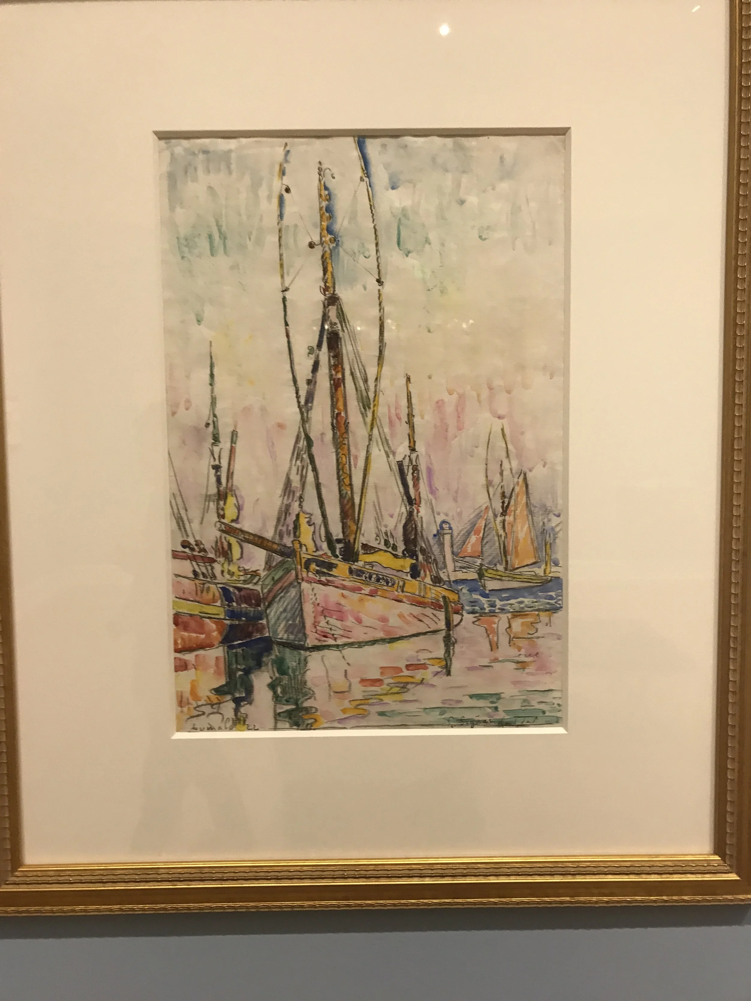 In the middle of this modernist wing was a little alcove filled with the lush vibrant watercolors of a the French artist Paul Signac. Signac dabbled with impressionism, pointillism, and straight up representation but all his pieces were really pleasantly colored treats for the eyes. These watercolors all come from a trip where he intended to paint every harbor of France.