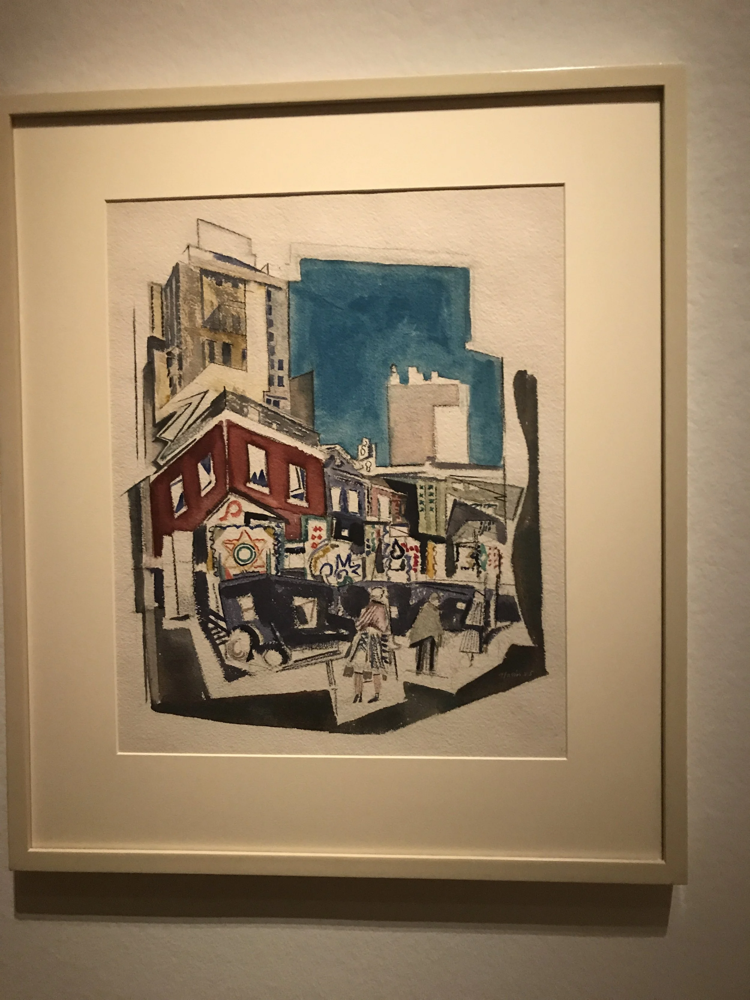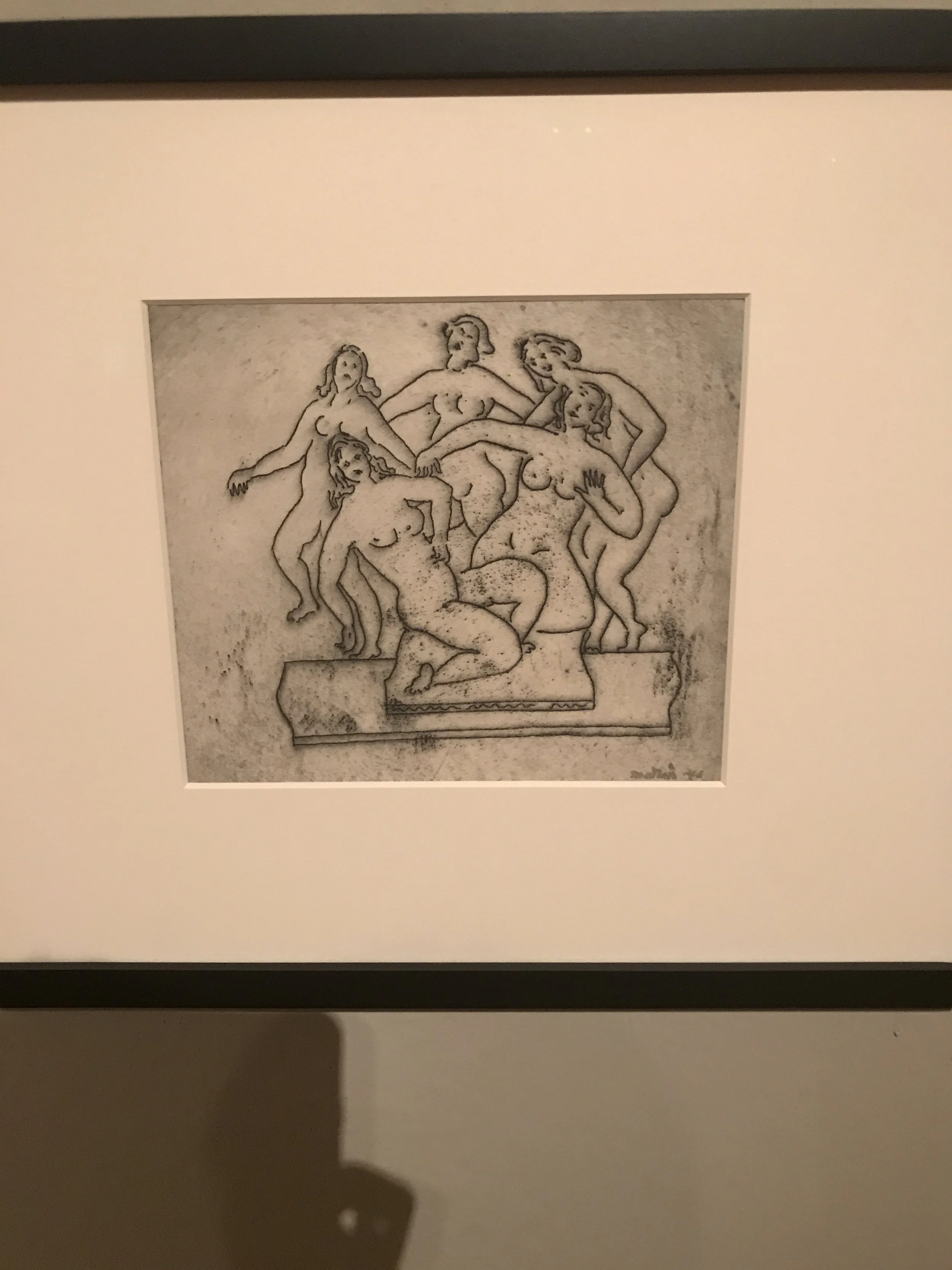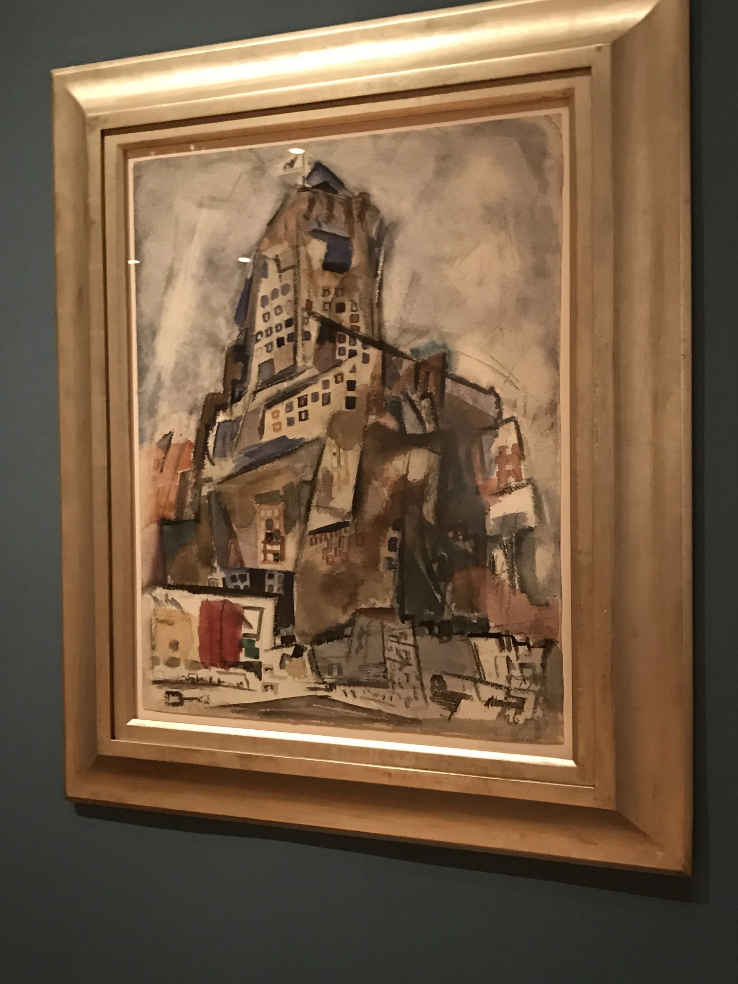 My favorite pieces were this srene watercolor landscape, some busy cubist city scenes, and as far as I can tell his only dabbling with mythological painting in an image of several naked muses.