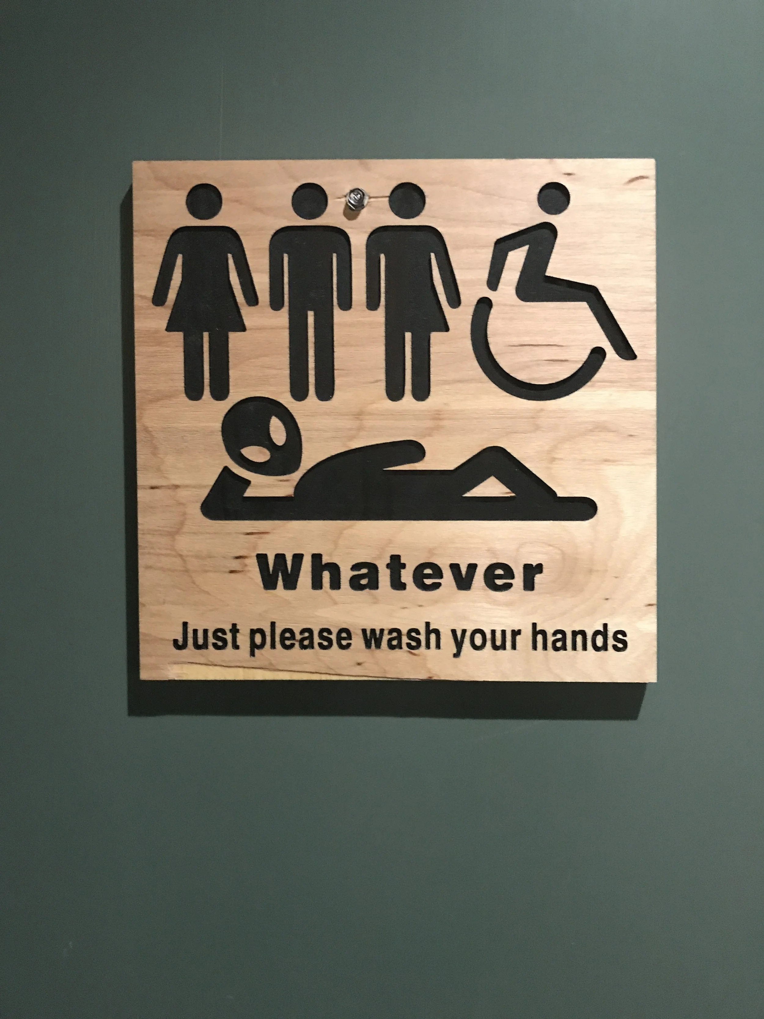 After bidding my free market West Coast counterpart safe travels and exchanging instagram info so we could follow each other's respective journeys, I decided to try some beers at a local brewery my friend recommended called Lost Forty Brewery. I ordered a flight of their pilsner, hefeweizen, Mexican lager, and stout. In a surprise while I liked the stout very much, my favorite was actually the Mexican lager which had a really nice full bodied malty flavor excellently complemented by the wedge of lime tossed in. The two lighter beers were also extremely solid. Lost 40 also had the distinction of having a bathroom sign so awesome it almost stole the show away from the beers. That alien is straight chilling.