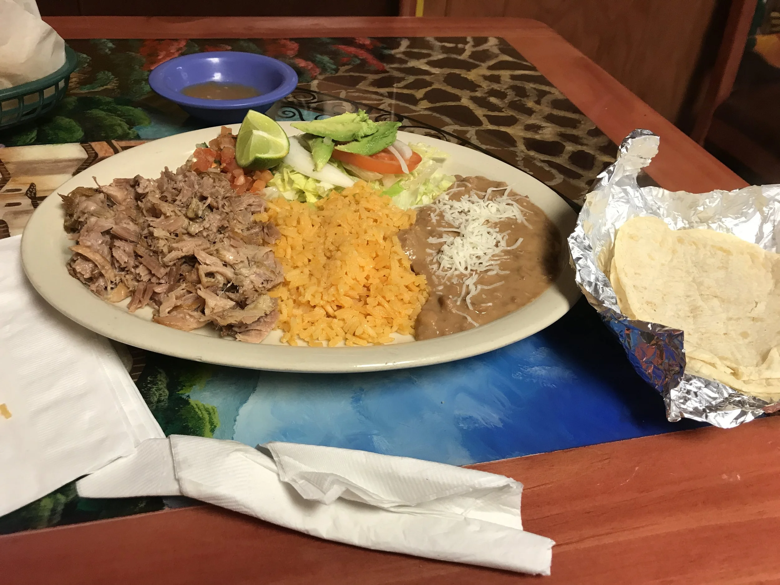 All that beer, made me hungry so I went to my friend's other big food recommendation in Little Rock, a cozy local Mexican restaurant called Taqueria El Palenque. The service was super friendly and the tortilla chips were dangerously bottomless so I was in a pretty good mood even before I had ordered. I ended up getting the carnitas, which came with rice, guac, pico, lime, beans, cheese, and fresh tortillas. It was amazing. The pork was very tender and flavorful, and the portions were unreal. I'm basically a human garbage disposal at this point and I couldn't even finish the whole meal. Being too full of good food isn't exactly a bad way to end a night though.