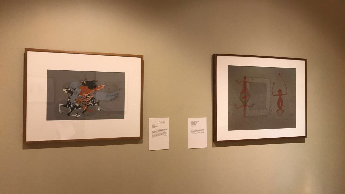 Across one wall of the basement galleries was a really powerful mural by Woody Crumbo, who actually won a highly competitive contest sponsored by the Phillips family, which means it actually predates the villa being used as a museum. Now that's a pretty great piece of curatorial luck to just have a great piece by an acclaimed artists already on the walls of the building.