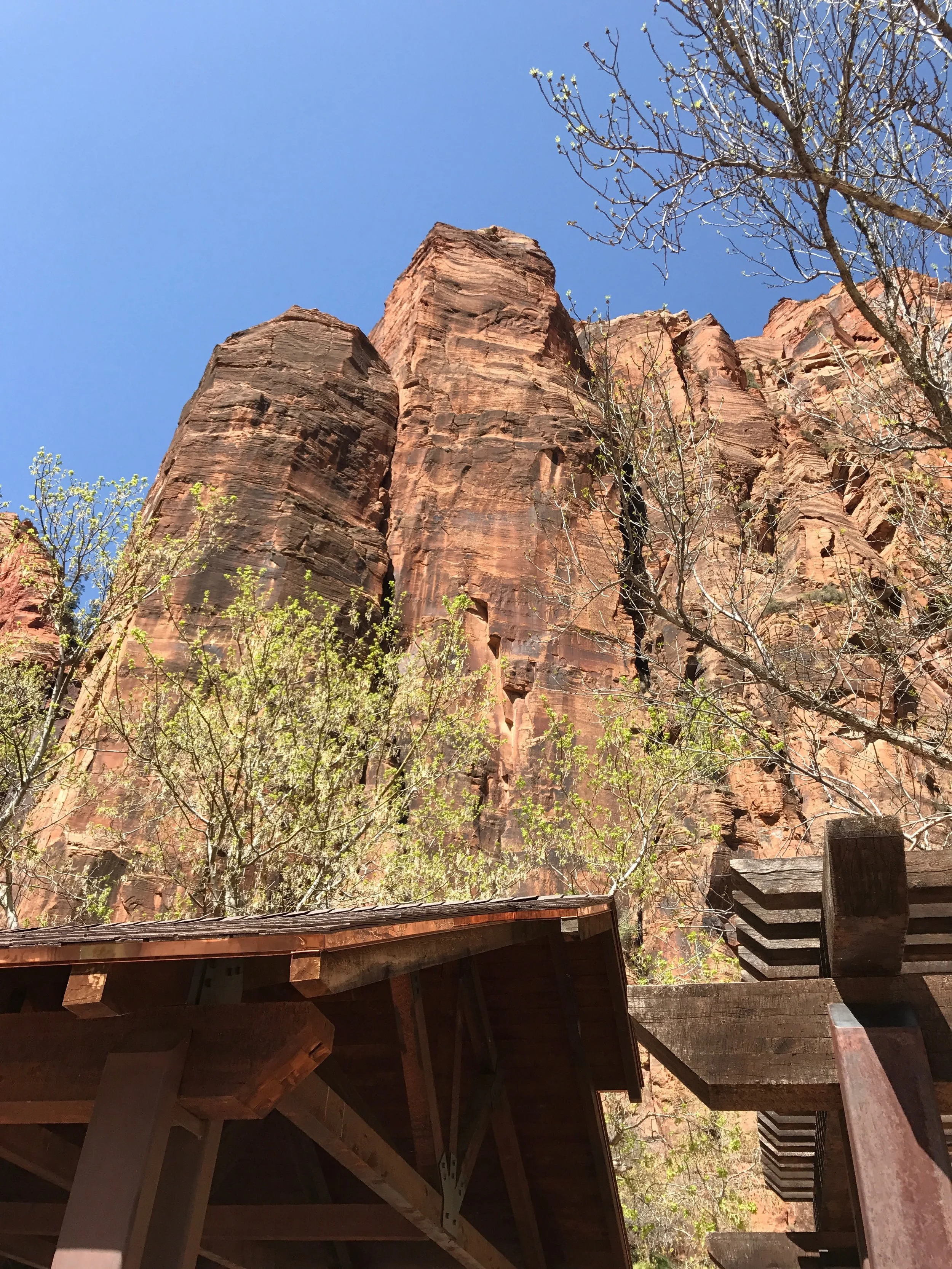 Zion is absolutely massive, clocking in at 229 square miles! To help visitors navigate this beautiful sprawling monstrosity, there’s a park shuttle service that brings you all over the park to the different trails, so you can be a little bit lazy on your way to doing some hiking. While I was waiting for the shuttle, i was happy to notice the that the statue of a park fire fighter they have near the visitor center apparently has very popular nipples because over time they’ve been rubbed so much by visitors that they’re a totally different color than the rest of statue.