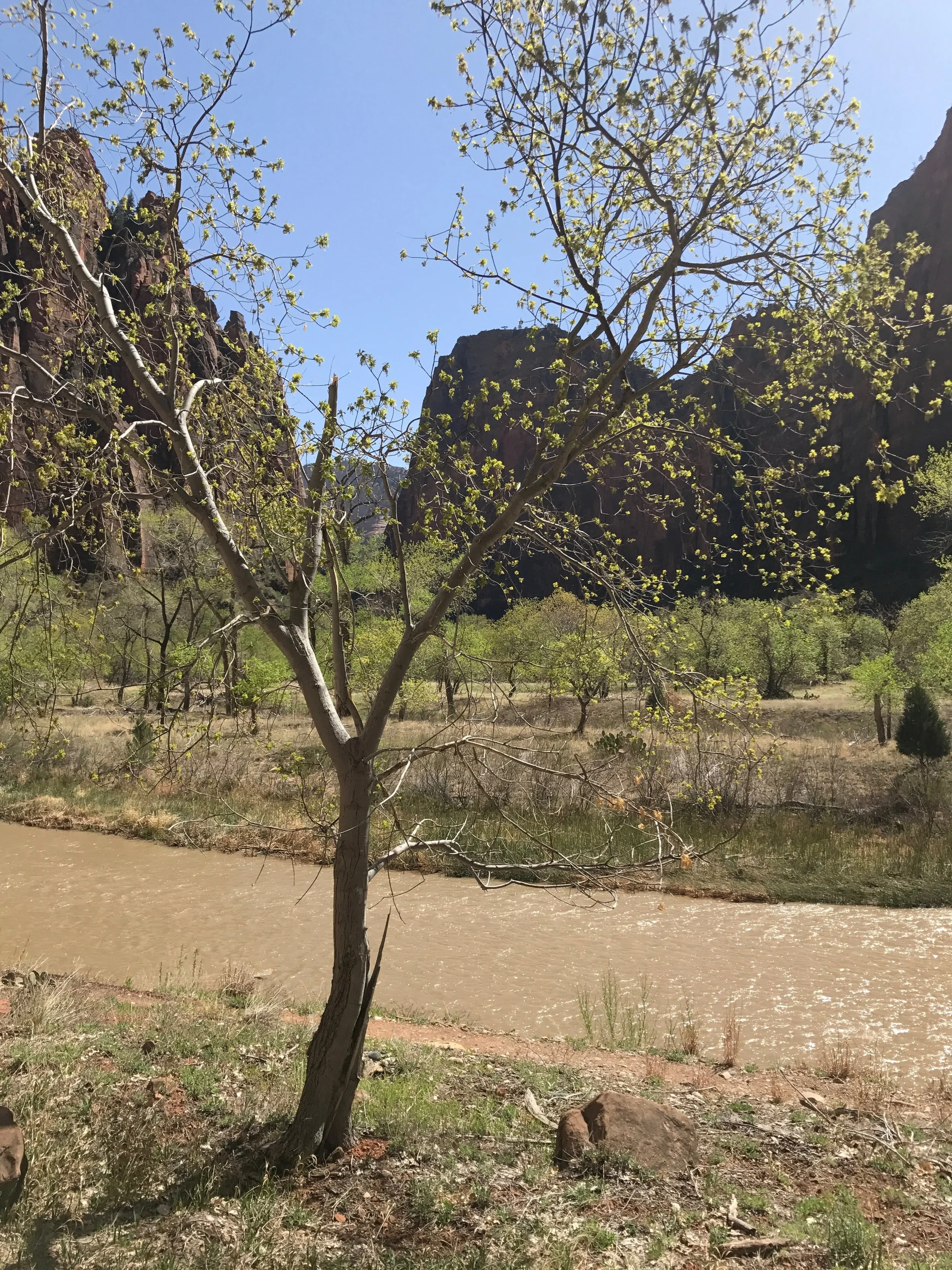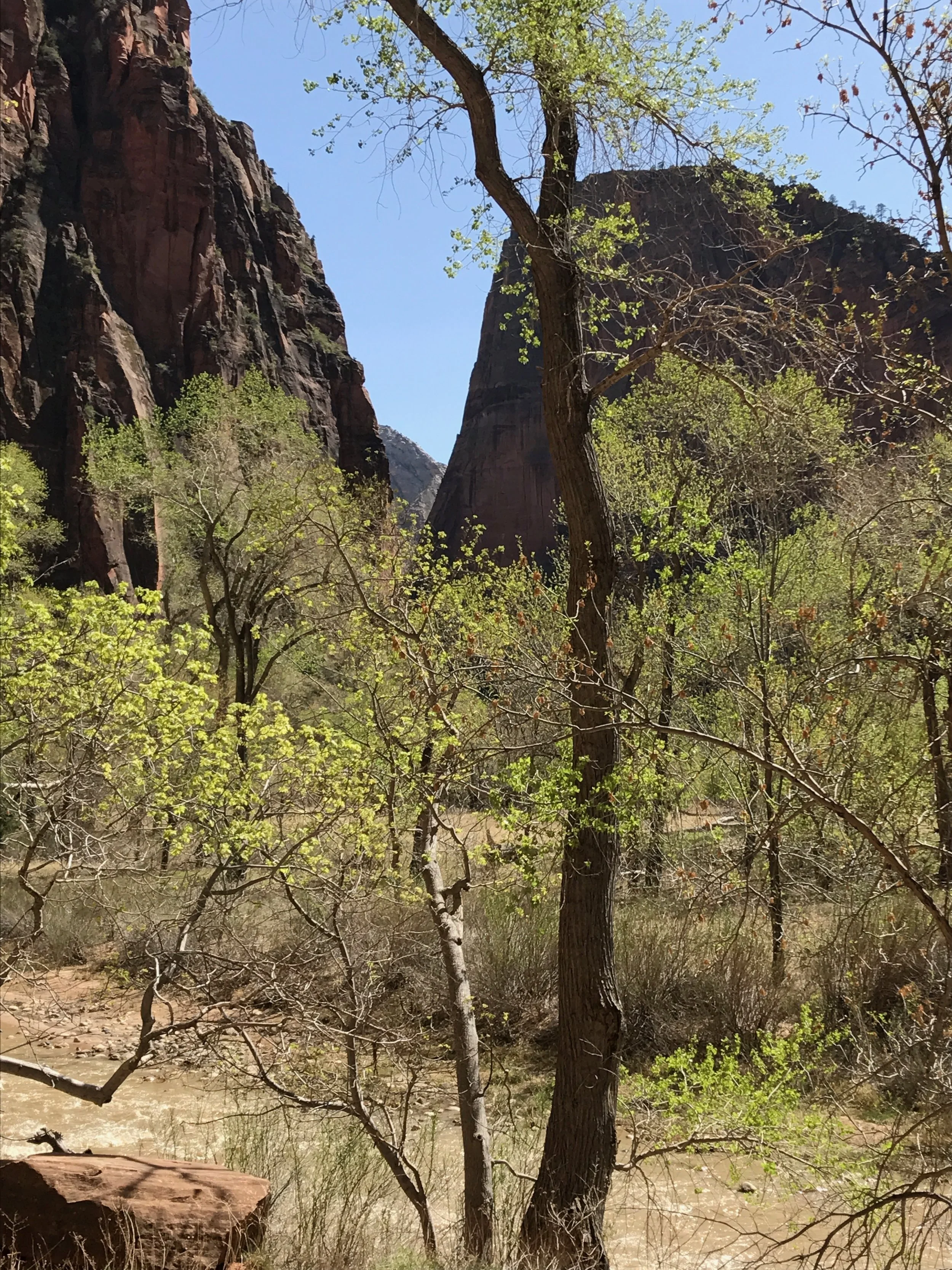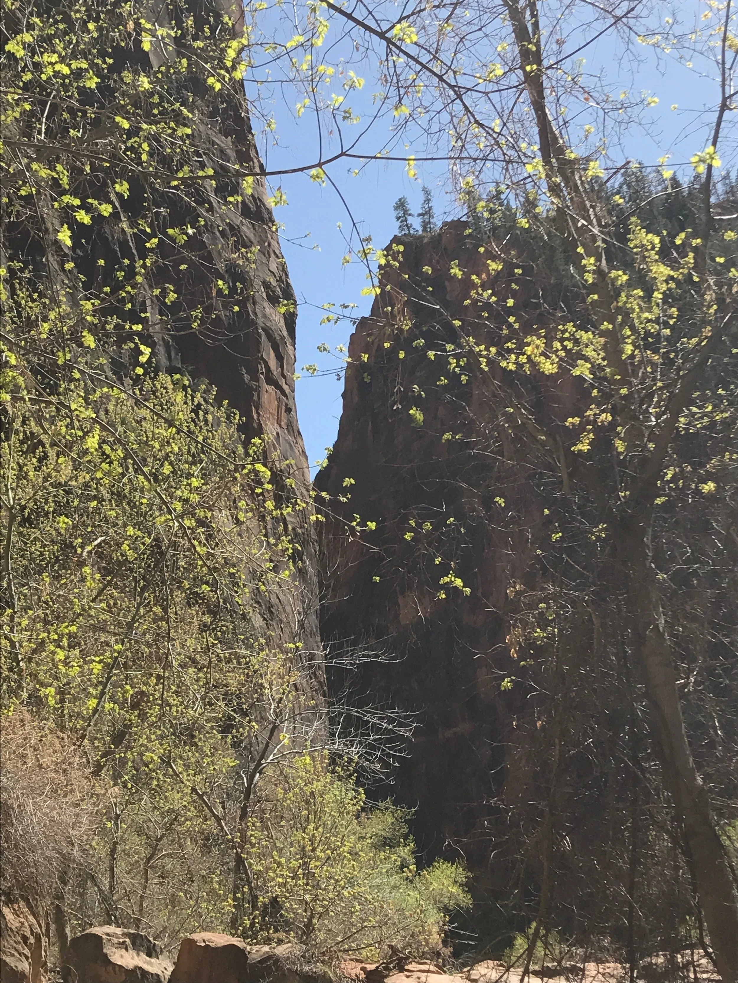 I eventually stopped at the very last bus stop called the Temple of Sinawava, named after the coyote god of the Southern Paiute people. From this jumping off point, I did the gentle but scenic 2 mile Riverside Walk, which runs into Zion Canyon via the Virgin River. I don’t think I’ve ever walked in a real canyon before, but it was so lovely and oddly peaceful being totally surrounded by sturdy towering rock formations. It was also utterly surreal having driven through deserts to get here and then suddenly being surrounded by lush greenery all along the river. It felt like I was back in New England at spring. Honestly there’s not much more I can say that wouldn’t be better off shown through pictures: