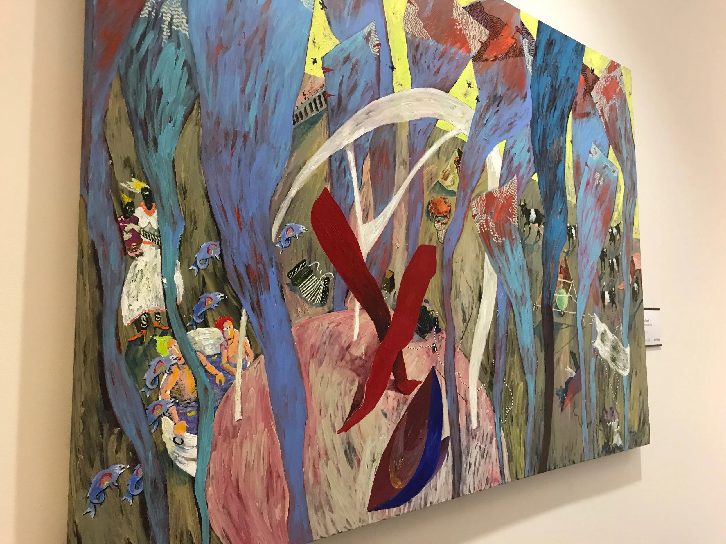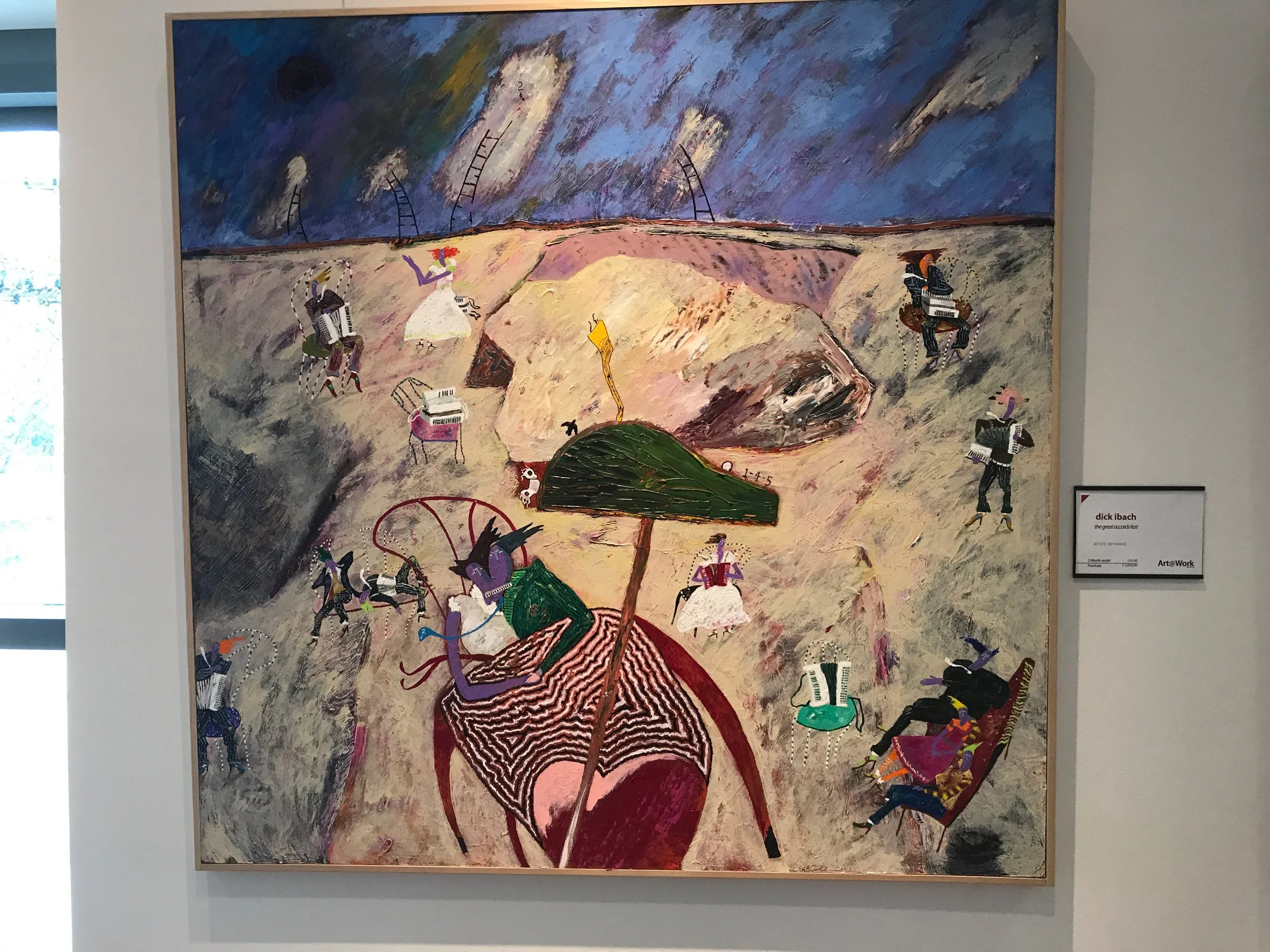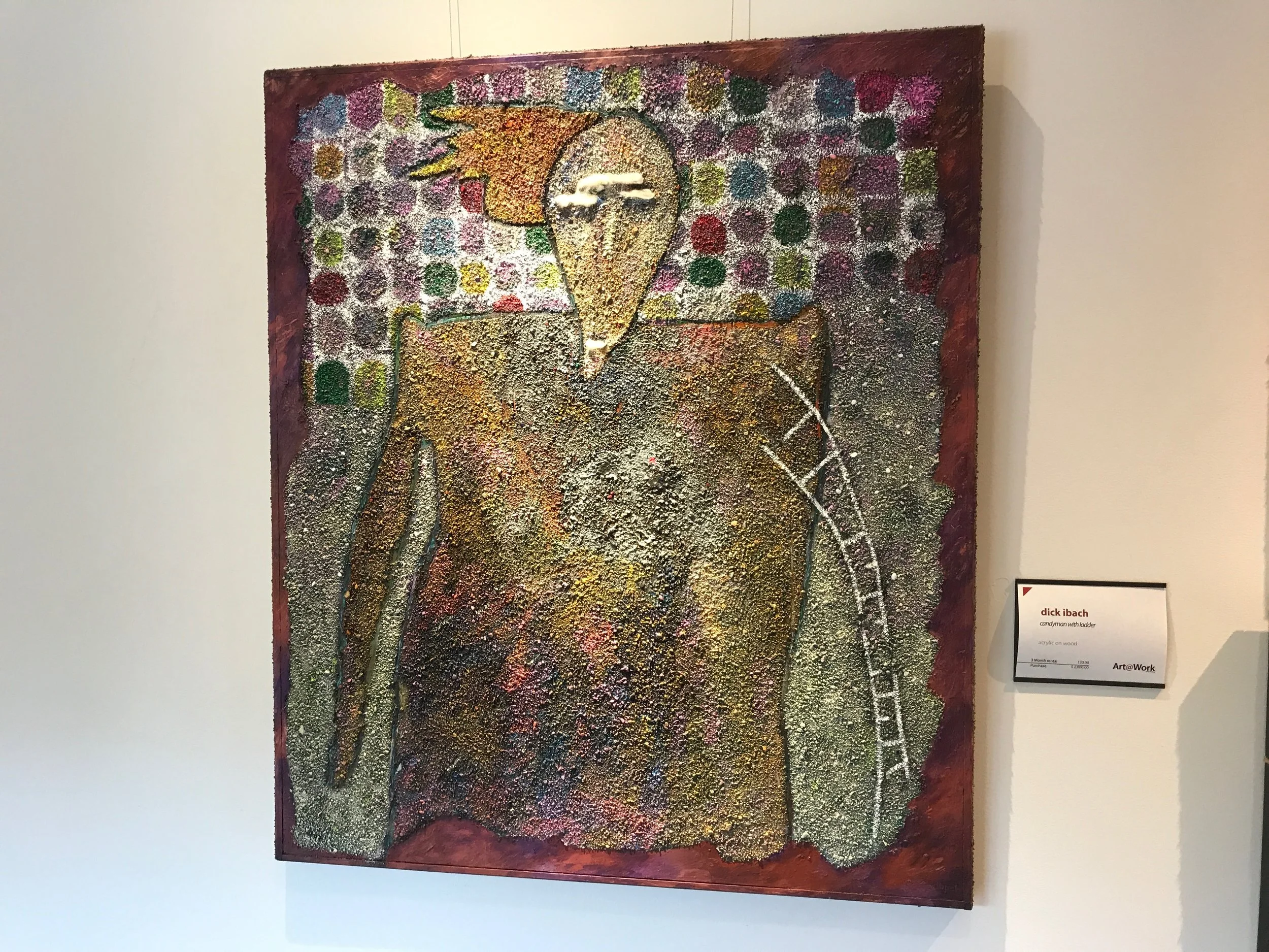Next up, I went to the museum’s archives building to see a small but fun gallery of contemporary Northwest art by an artist named Dick Ibach. Ibach combines pretty grand, interestingly textured impressionist backdrops with goofy caricatured figures. Despite being capable of realist renderings (look at his cars), he intentionally makes the people look ridiculous because he says he wants his work to “speak to the dichotomy of the human condition: both the nobility and the stupidity of it all” I can appreciate that.
