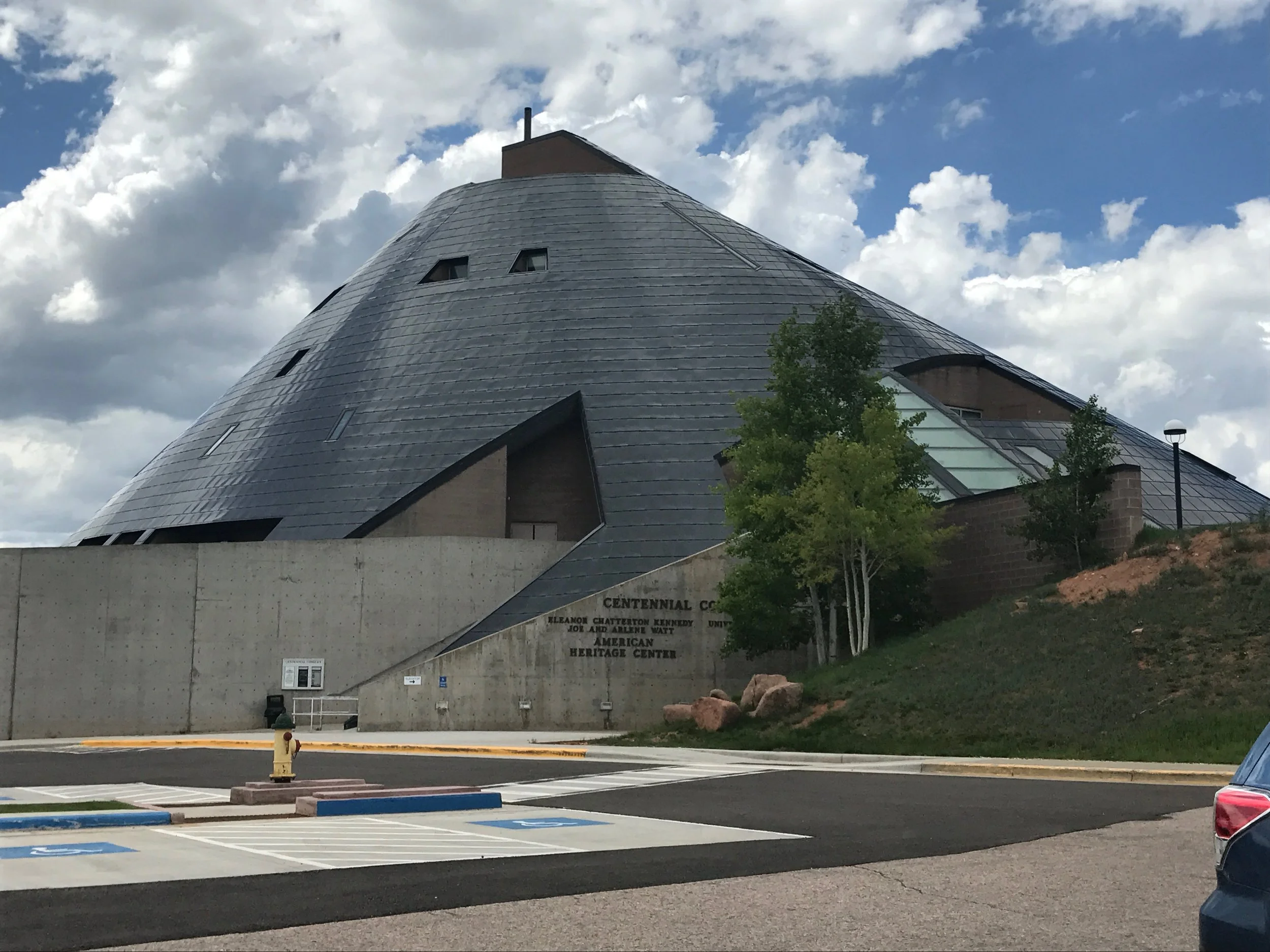 The cool art continued at my next stop for the day, the University of Wyoming Art Museum in Laramie. Designed by acclaimed architect, Antoine Predock, the Centennial Complex (which houses both the art museum and the University’s American Heritage center) features a five story copper cone that dramatically surges up the city’s skyline to call to mind the many Mountain peaks that dominate the state. It’s a pretty fantastic piece of work that really draws your eye and your imagination.