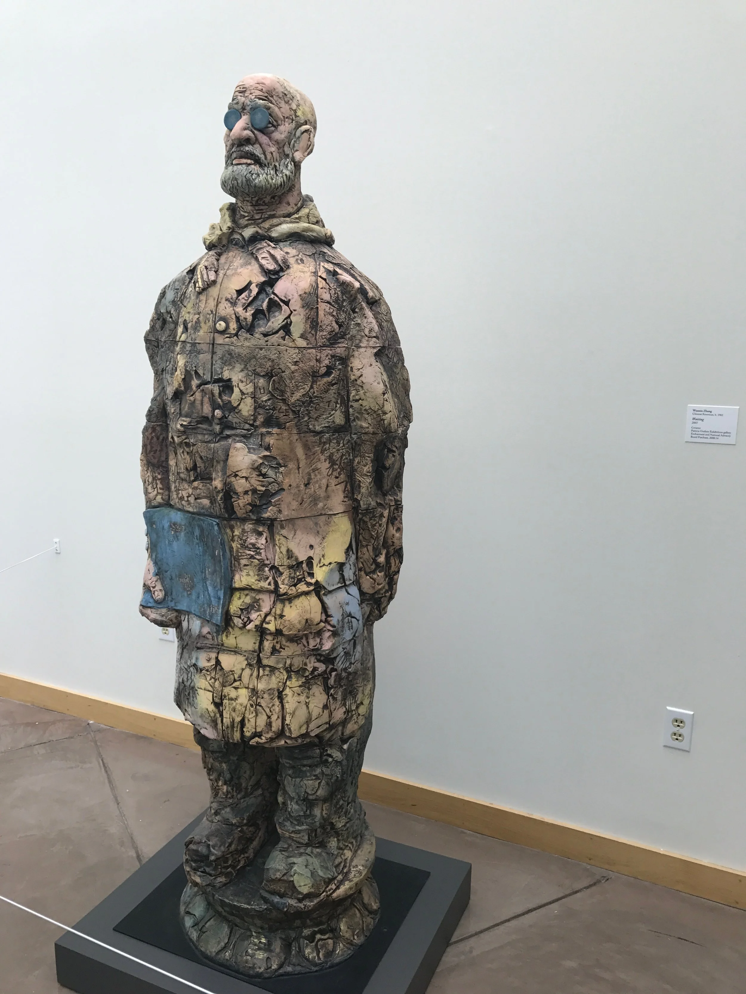 Luckily the museum completely lived up to the high bar set by its architecture, and for a free college art museum it had a really top notch collection. Things started off on a high note with a piece right next to the welcome desk called Waiting by Chinese ceramic sculptor Wanxin Zhang. It combined incredible realism around the facial features with surreal map-like textures on the clothes of the map all of which were impressively improbable to make out of clay. I was just glad I though twice before I asked him for directions.