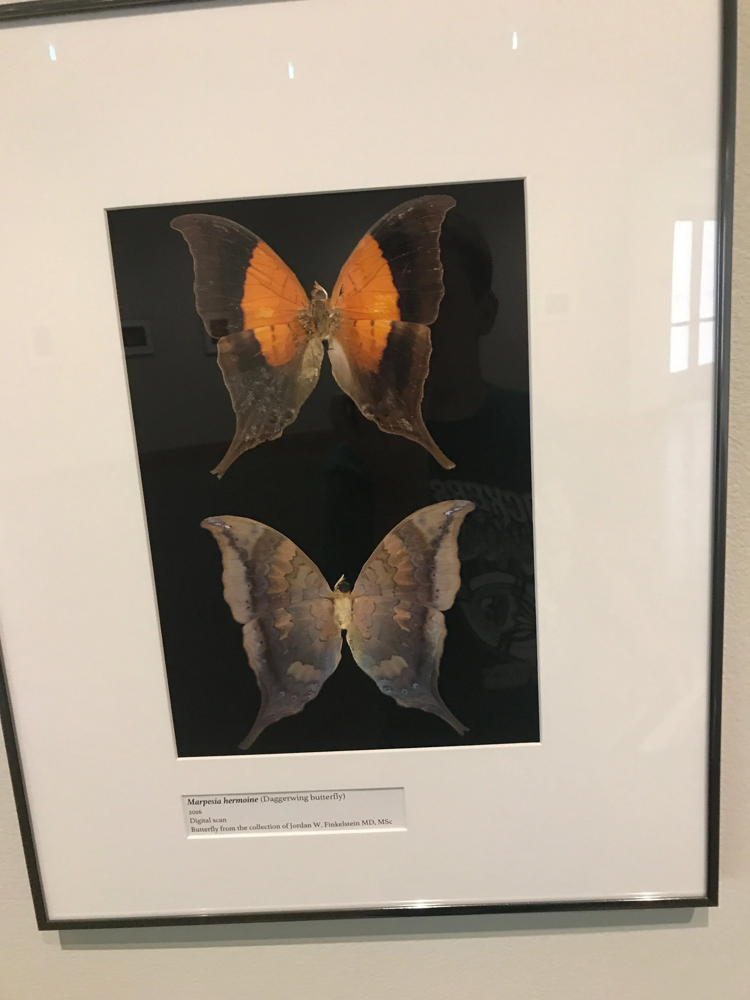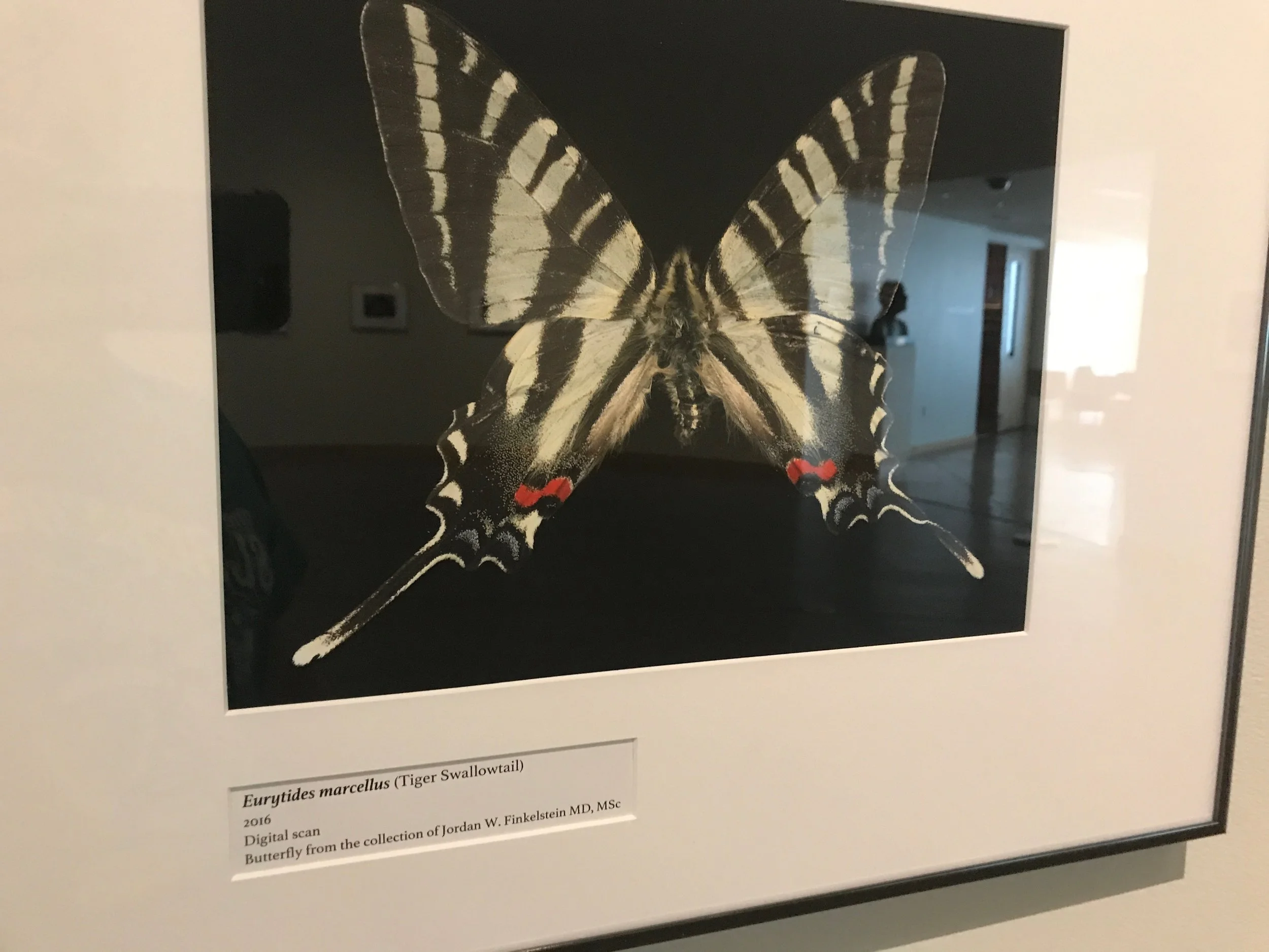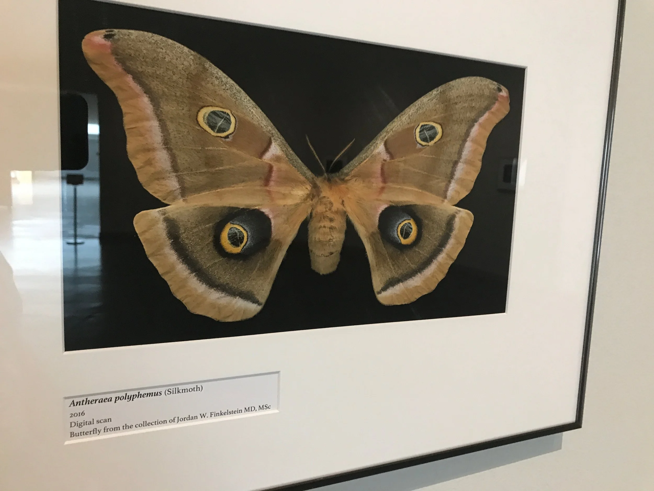 The first exhibit I visited was a really cool intersection of art and science by Gerald Lang and Jennifer Anne Tucker. The artists borrowed butterfly and moth samples from the personal collection of a doctor named Jordan Finkelstein and scanned them to make ultra-high resolution digital photographs. It’s interesting that by simply changing the context of these displays from a science museum to an art museum your eye starts to notice even more how pronounced the natural colors and patterns are within the insects’ wings. It’s incredible just how much variety nature contains, and the artists’ use of technology to really bring out the the depth of contrast and texture is really inspired and leads to a spellbinding final product.