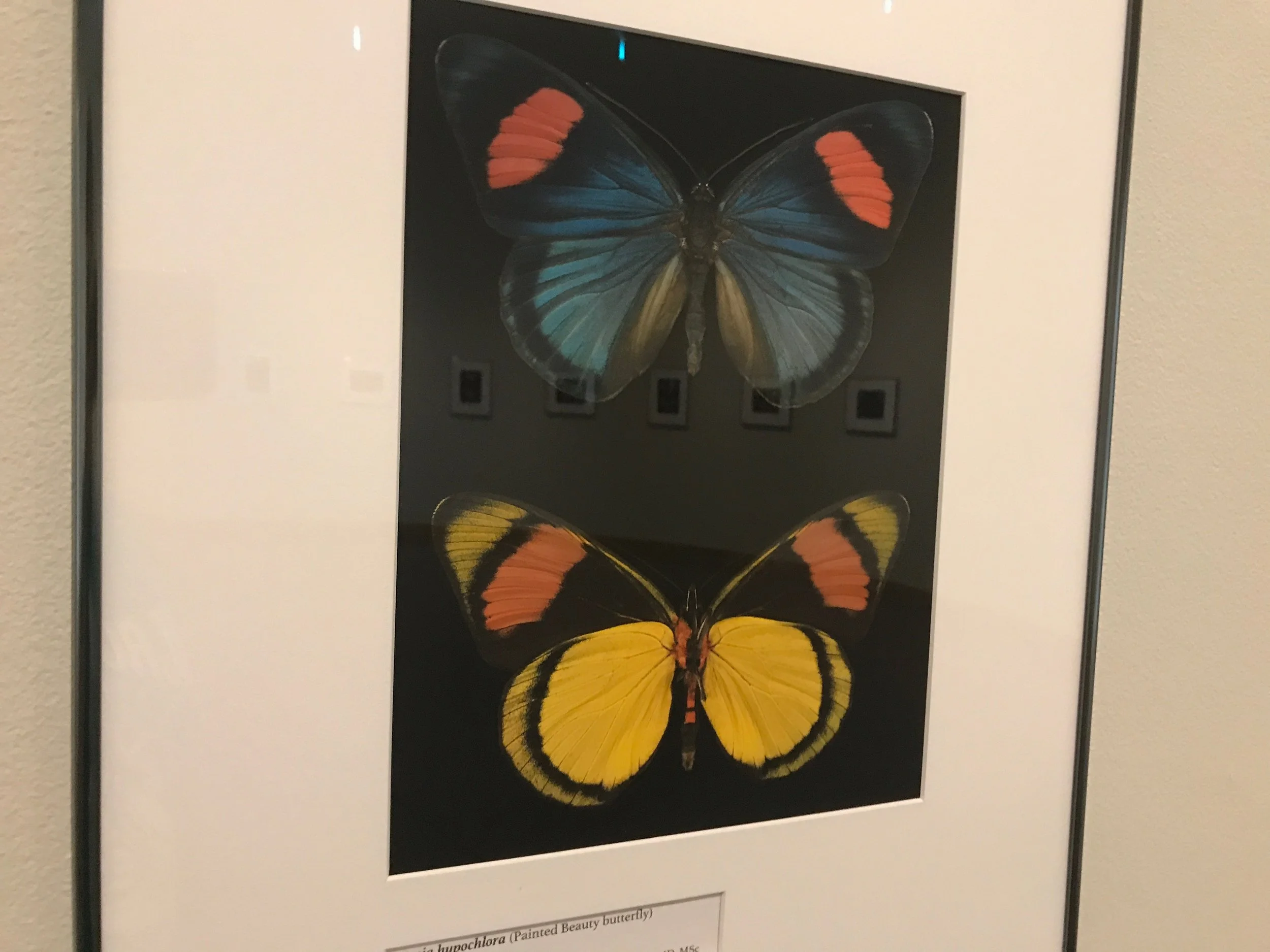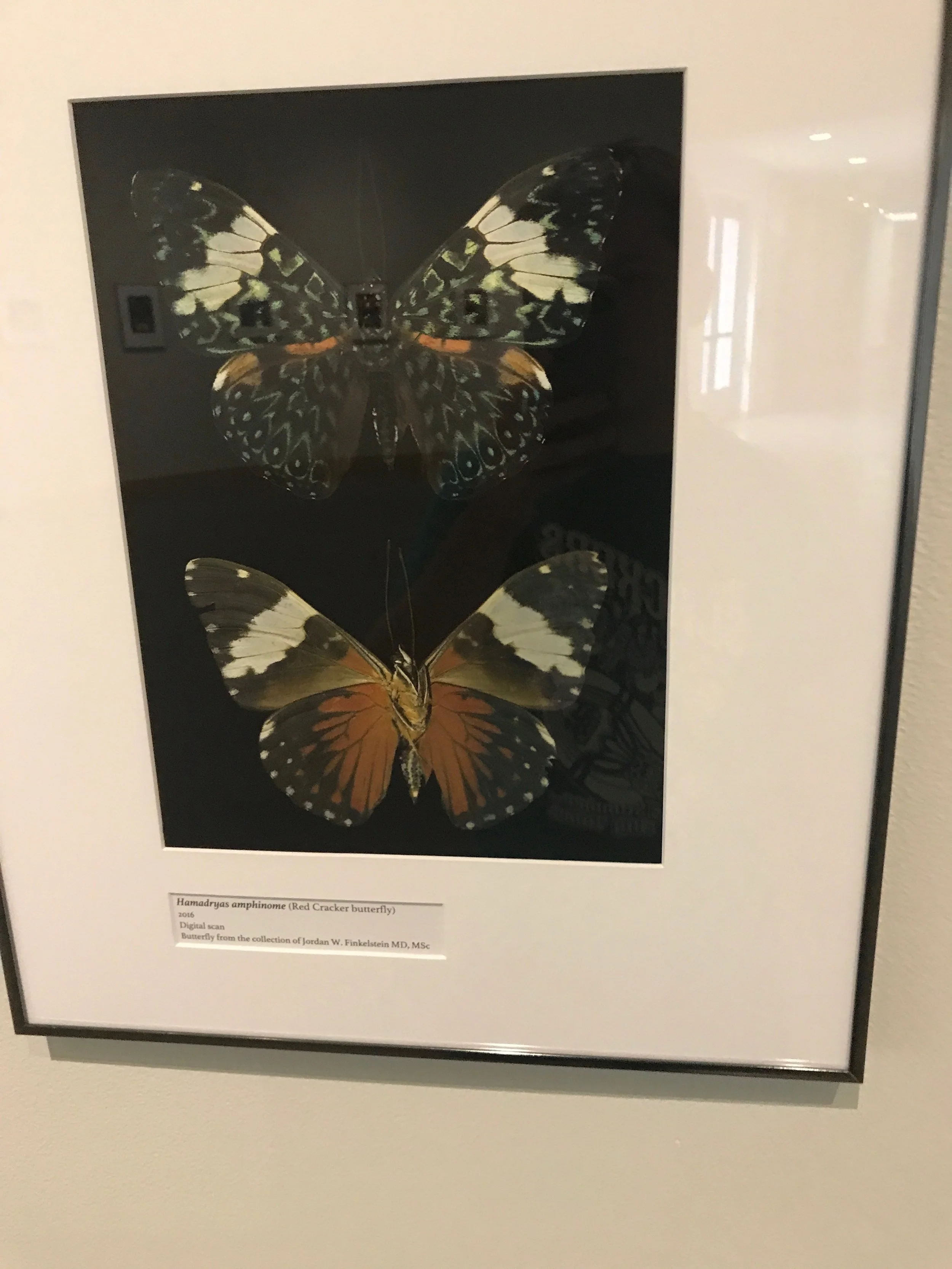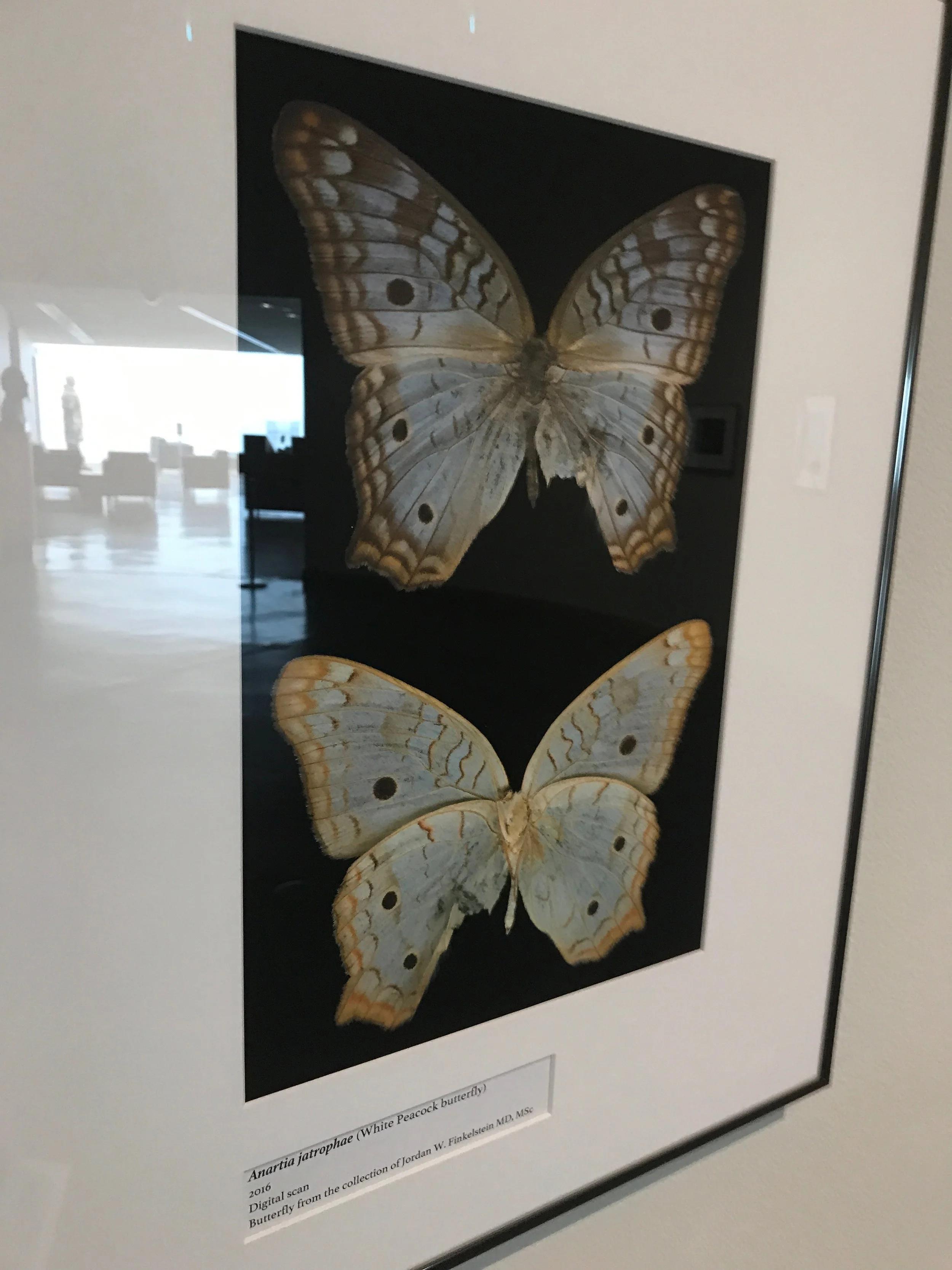 The first exhibit I visited was a really cool intersection of art and science by Gerald Lang and Jennifer Anne Tucker. The artists borrowed butterfly and moth samples from the personal collection of a doctor named Jordan Finkelstein and scanned them to make ultra-high resolution digital photographs. It’s interesting that by simply changing the context of these displays from a science museum to an art museum your eye starts to notice even more how pronounced the natural colors and patterns are within the insects’ wings. It’s incredible just how much variety nature contains, and the artists’ use of technology to really bring out the the depth of contrast and texture is really inspired and leads to a spellbinding final product.
