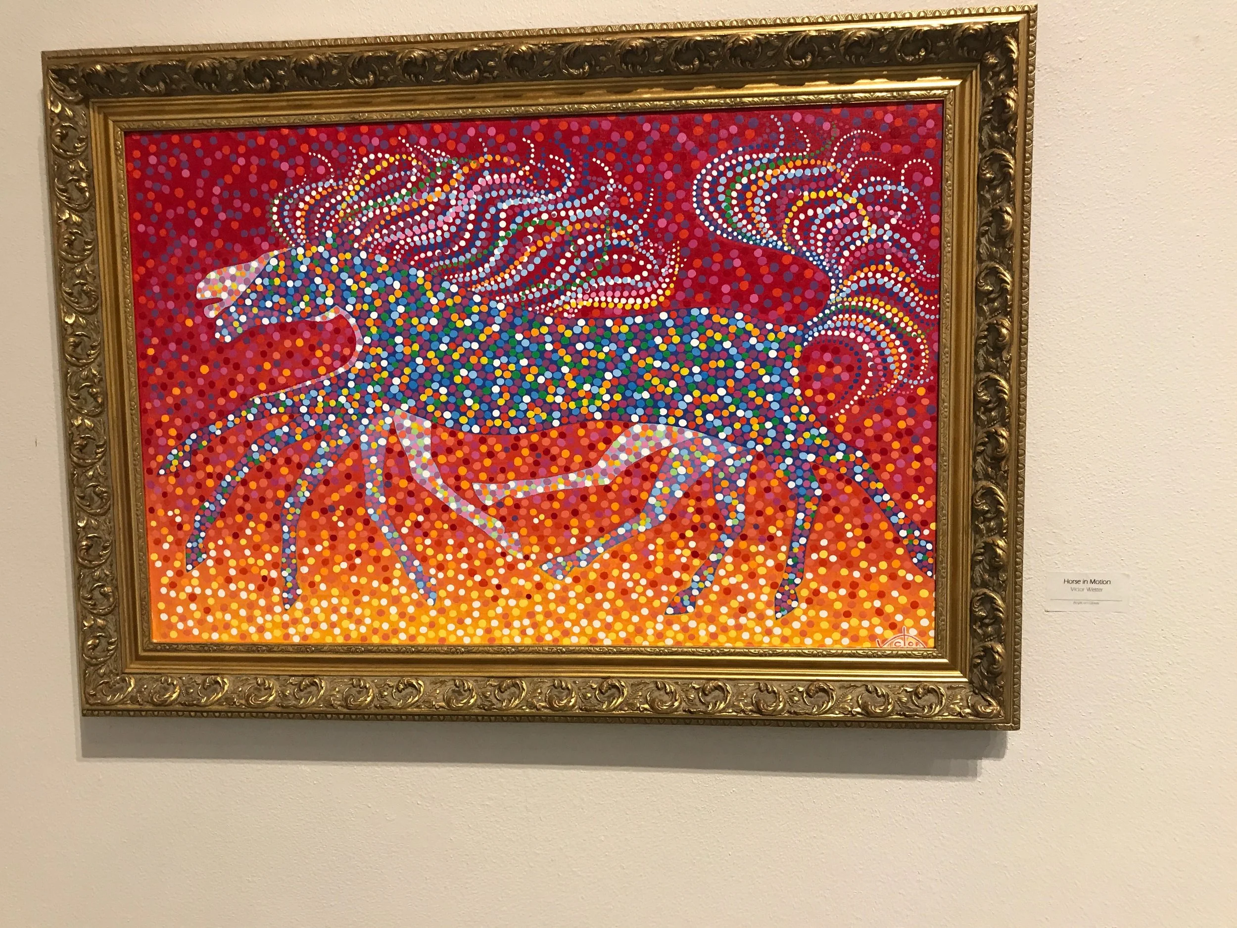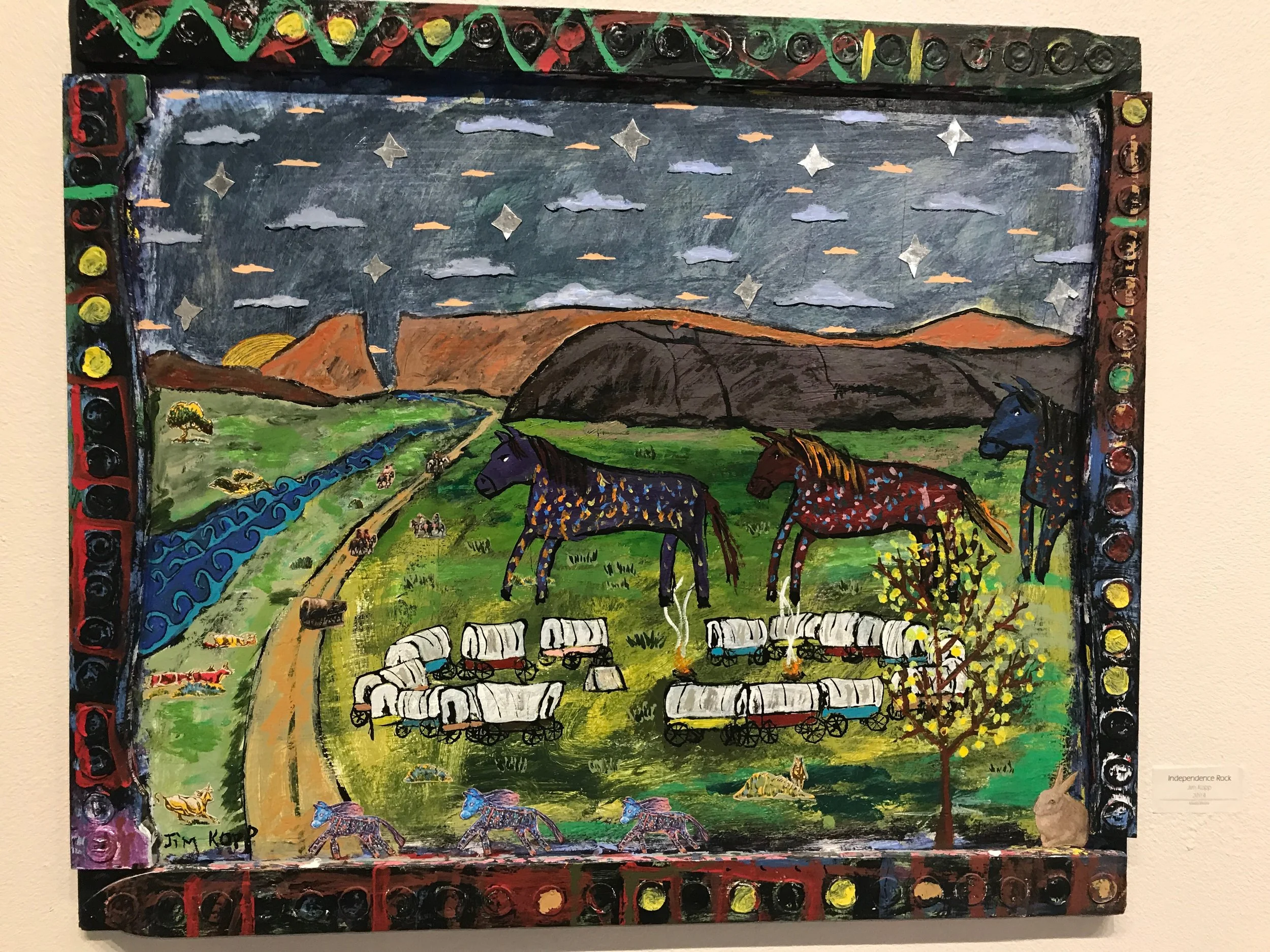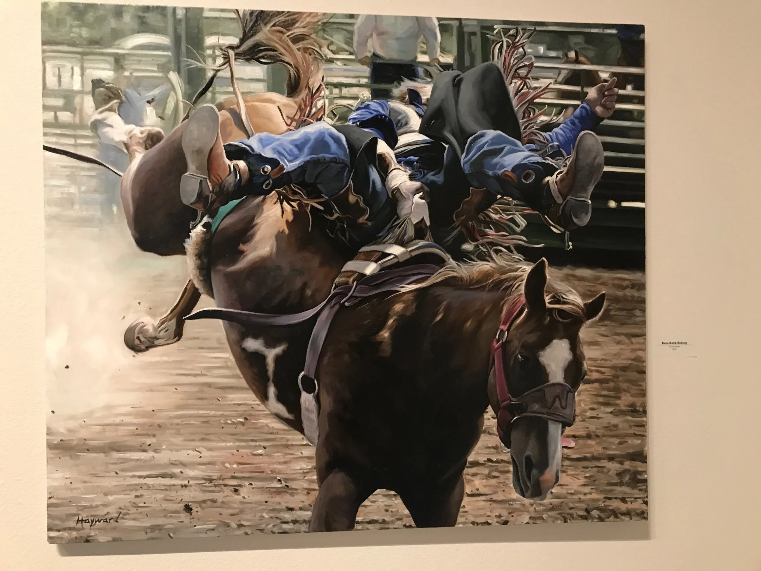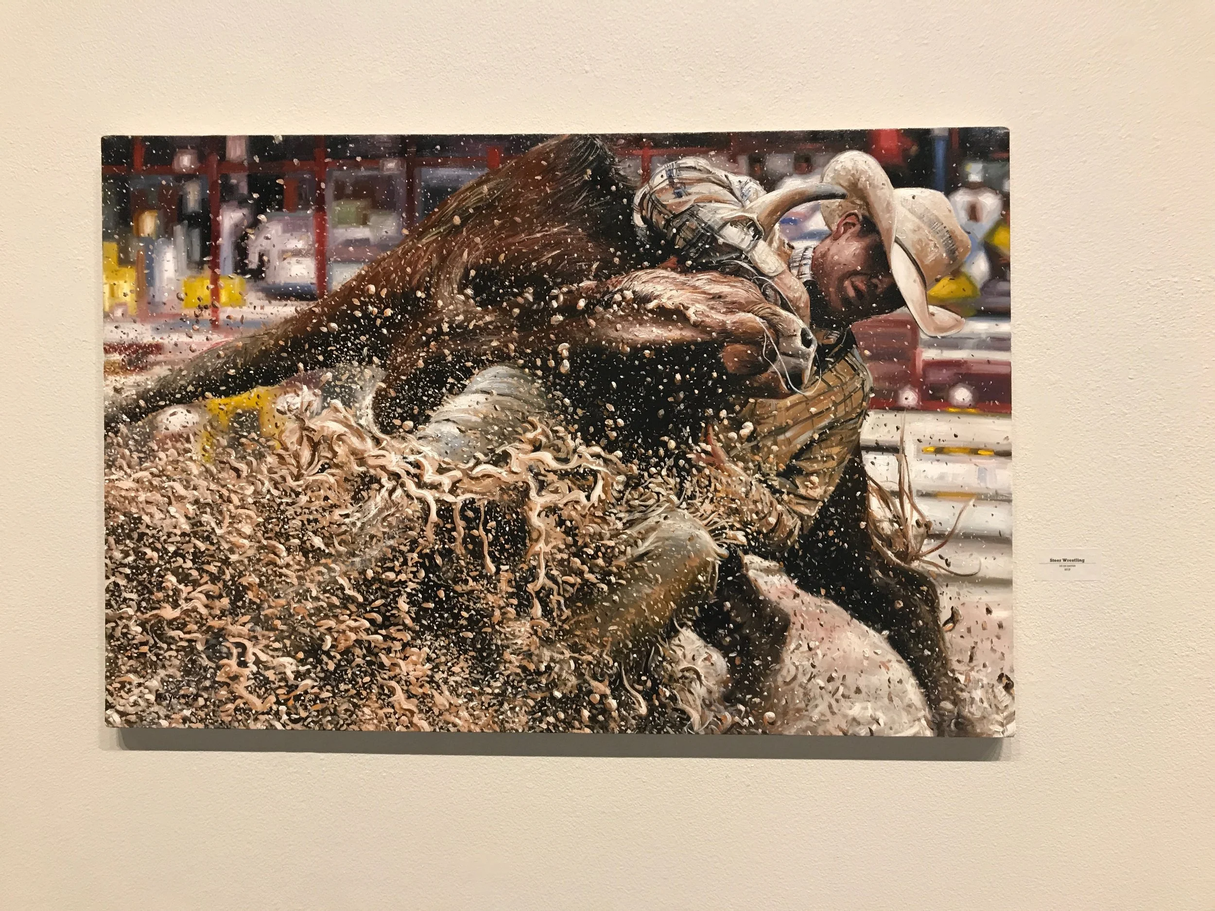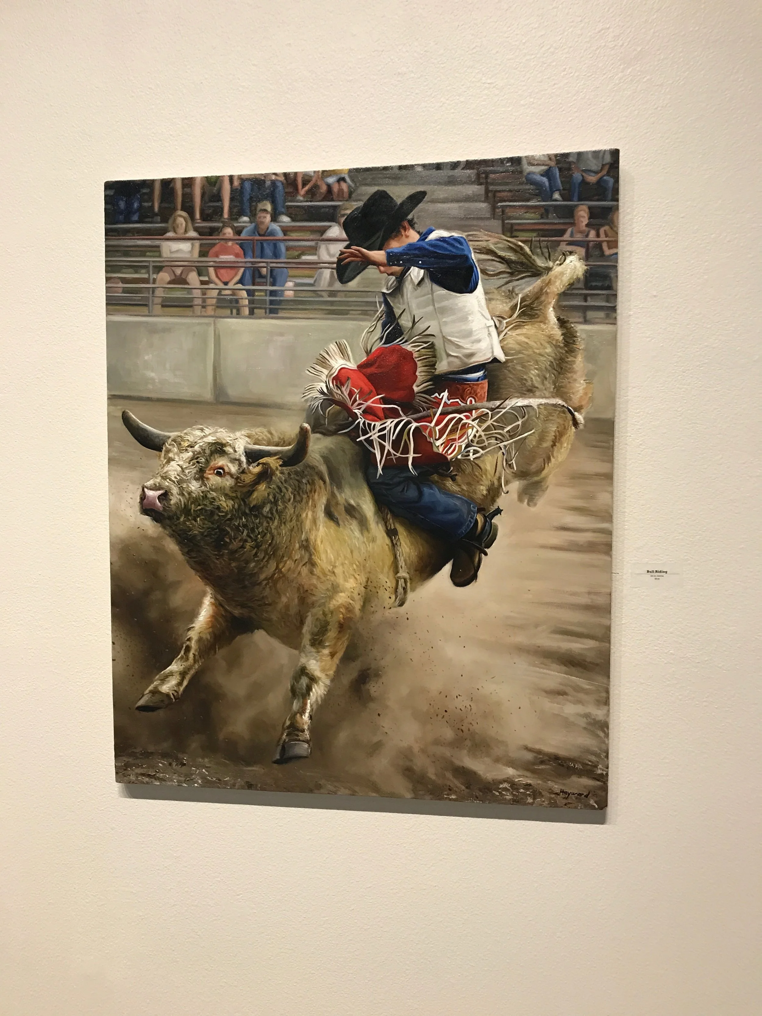 The first gallery was a special exhibit of giant photo-realist painting by Justin Hayward (not the one from the Moody Blues) of rodeo scenes. Rodeos were never a big part of my life growing up, and they’ve never particularly interested me but these paintings really blew me away. His popping colors and heightened reality create a sense of drama, beauty, and poetry in a setting I might never have truly appreciated otherwise. Hayward is a professor at Casper College, so it’s a pretty incredible display of local talent to start the visit with.