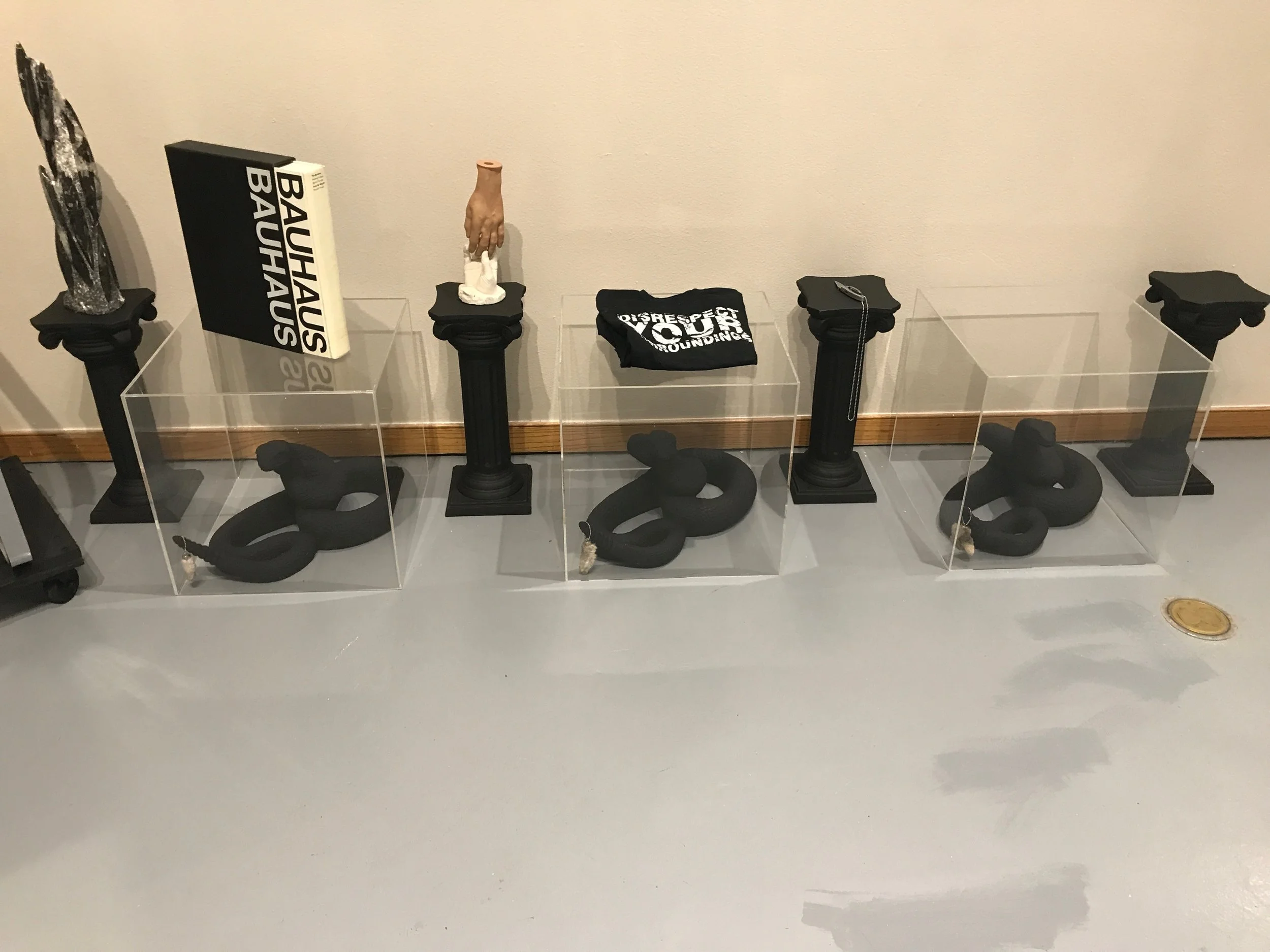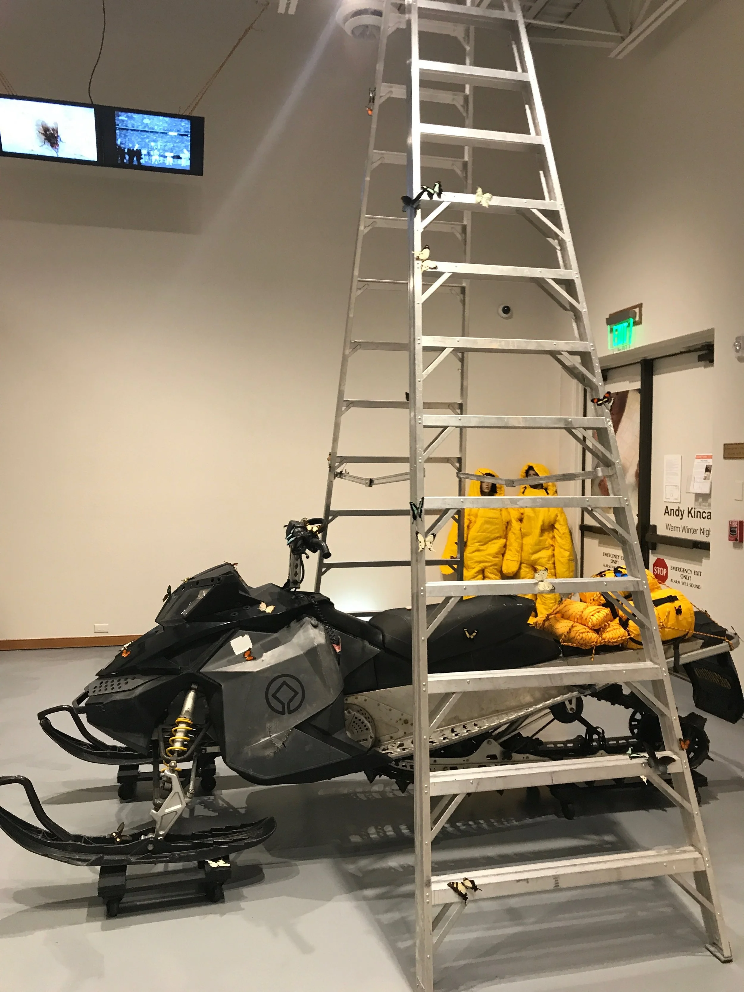 Speaking of formally strange, I’ll be honest I didn’t fully understand the next exhibit and installation piece called Retool for Warm Winter Nights by Andy Kincaid. The piece was a sort of dystopian reimagining of the pioneers’ journey with a blend of sculpture (including some impressively creepy snakes), found objects, video, photography, and paintings. I didn’t necessarily “get” it as a complete whole, but certain elements definitely did leap out to me as aesthetically interesting or technically impressive.