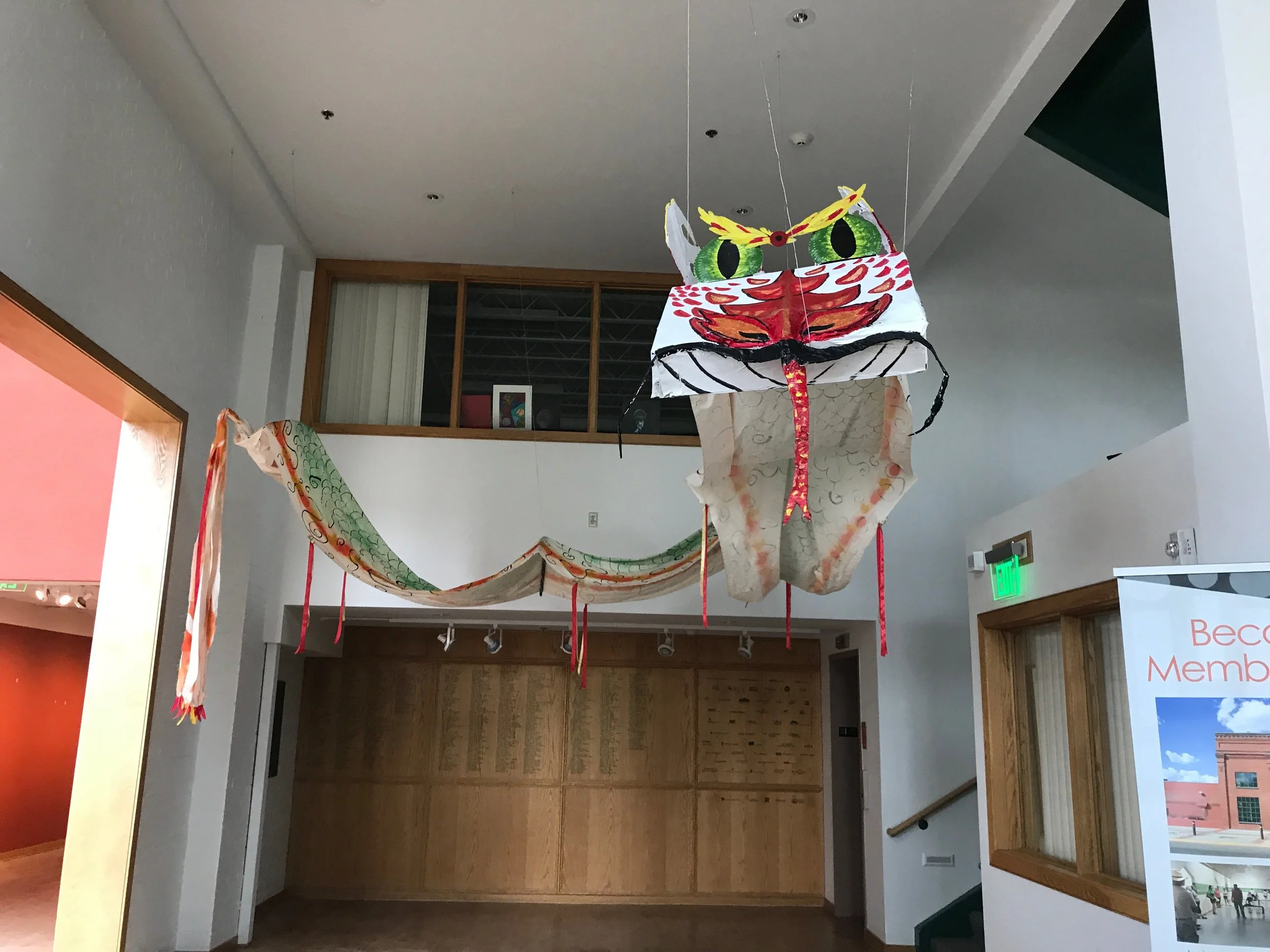 As I was getting ready to leave, I decided to look up and noticed that I almost missed a fantastically grumpy Chinese dragon that had been built for a parade and was now guarding the museum with his surly stare:
