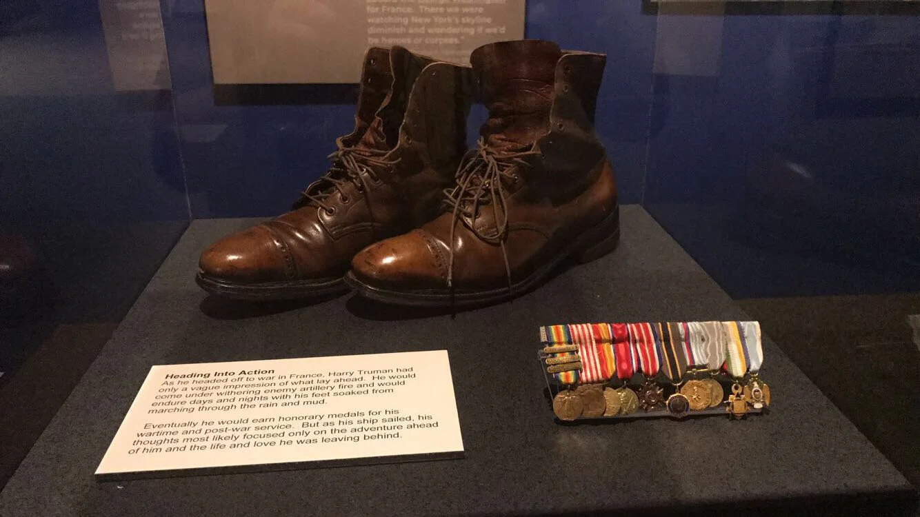 The special exhibit while I was at the museum was dedicated to Truman’s time serving in the military during WWI. Truman had initially wanted to go to West Point because they had no tuition and he couldn’t afford college as a young man. His eyesight however, 20/50 without glasses, was considered far below acceptable and he was denied admission. He was able to join the local Missouri National Guard, overcoming the eyesight requirement by secretly memorizing the eye test. In the national guard, he attained the rank of corporal, and when his unit was sent to France during WWI he was promoted to captain. Truman’s unit was known for their discipline problems but Truman was eventually able to whip them into shape by using curse words he learned while working in a railroad yard. The men were so surprised to hear this dorky guy talk like that, they just ended up listening (this is completely true which is hilarious). Truman’s men would go on to supply support to General Patton’s tank brigade through France and made it through the entire war without losing a single man, which was a massive boost to young Truman’s confidence in his leadership abilities. My favorite part of this exhibit was the inclusion of letters that Truman wrote home to his wife from France. The quote “That helmet picture was a dickens of a looking thing, but I thought perhaps you’d like to see what I looked like as a real fightin’ man” killed me.